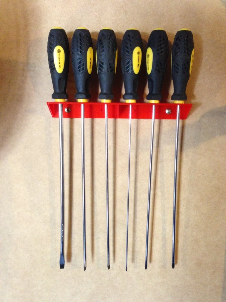 Přizpůsobitelný držák nástrojů. Tento držák usnadňuje organizaci nářadí a má možnost přizpůsobení vašim specifickým potřebám. Robustní konstrukce zajišťuje odolnost a efektivní design usnadňuje ukládání a přístup k vašemu nářadí.