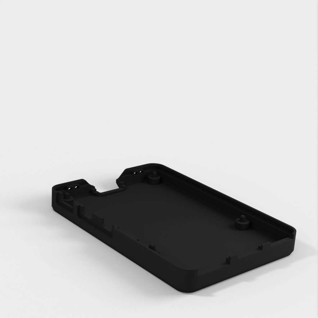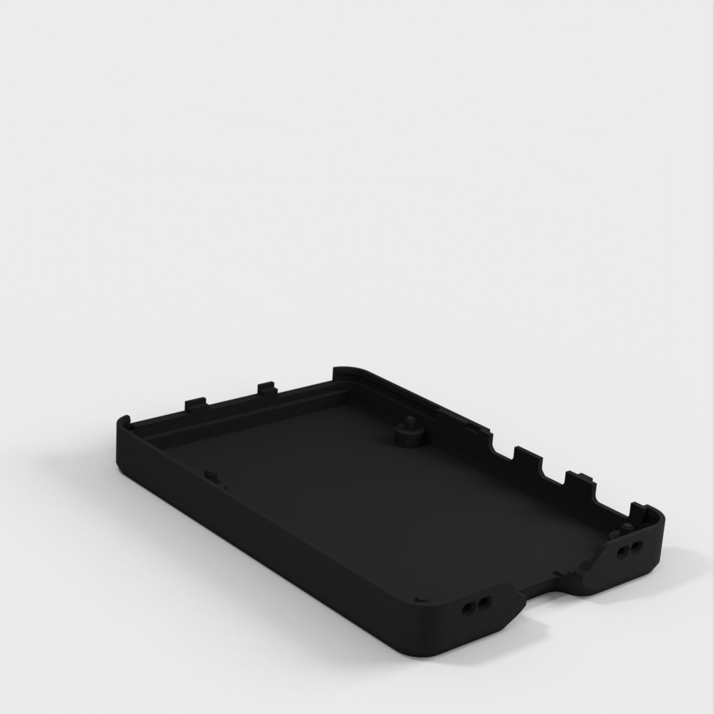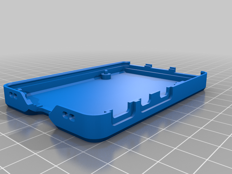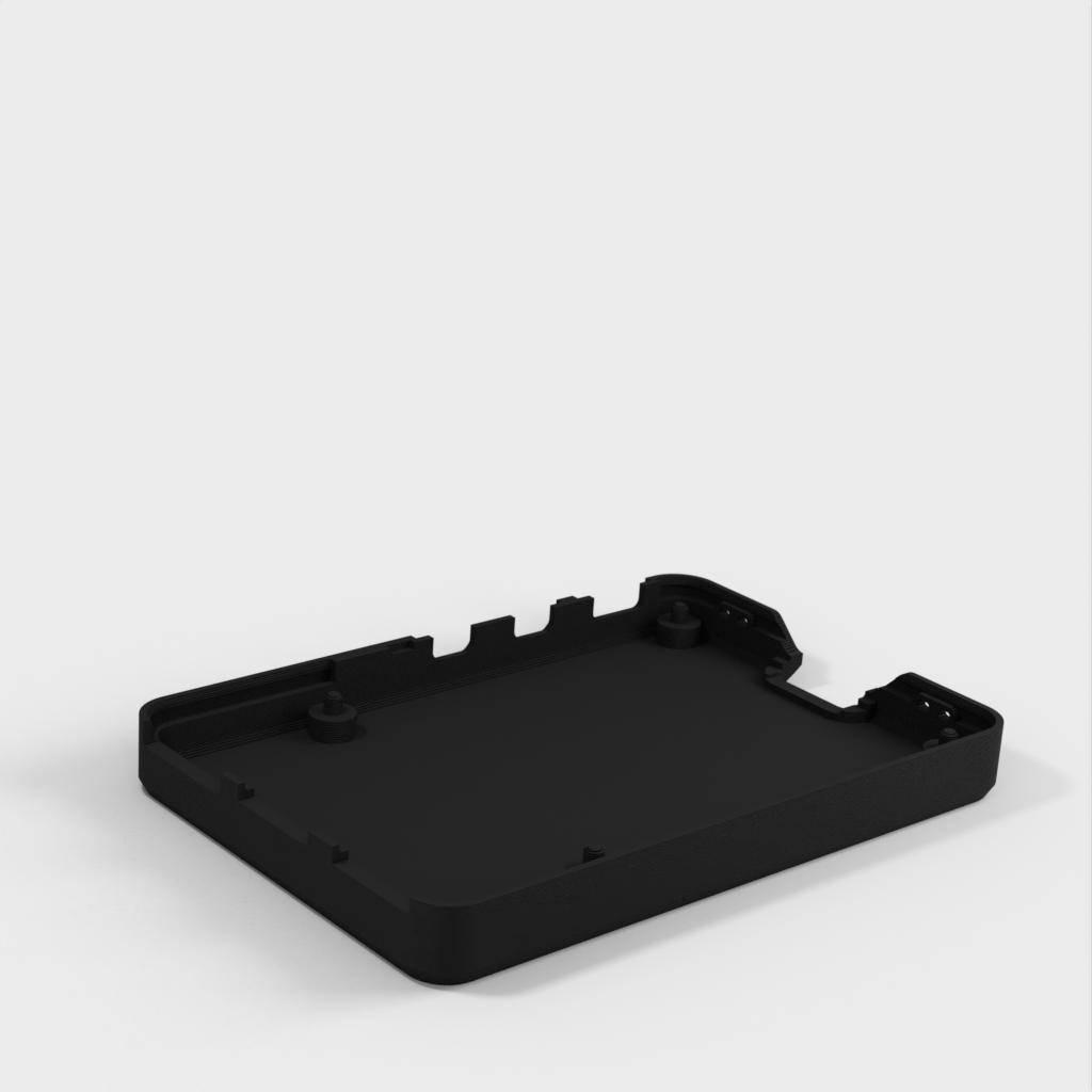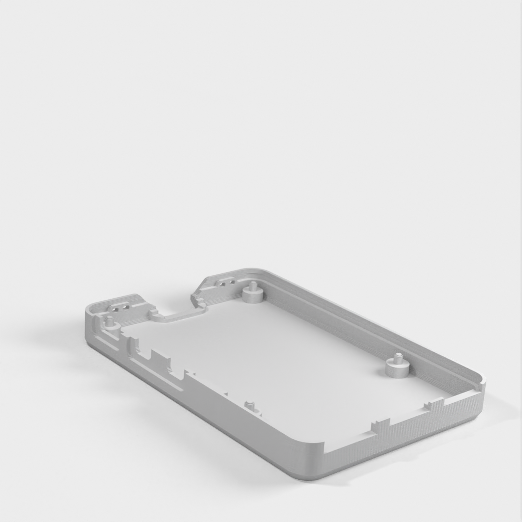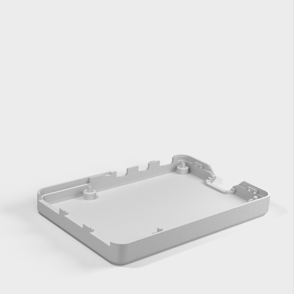 Jednoduchý kryt pro Raspberry Pi 5 z roku 2023. Změny zahrnují přemístění konektorů USB a LAN, odstranění konektoru pro sluchátka a přidání malého otvoru pro tlačítko reset. Byly přidány větrací otvory, aby se do nich vešel původní chladič.