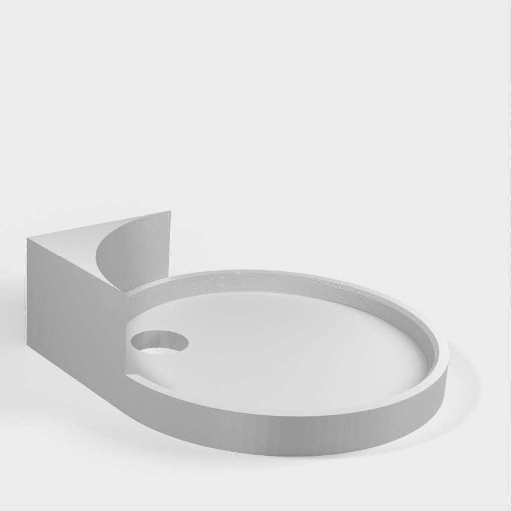 Rohová polička s malým otvorem pro vedení napájecího kabelu k fotoaparátu. Tato rohová polička je navržena pro snadnou montáž a je ideální pro udržení fotoaparátu ve výšce a zároveň pro udržení kabelů v pořádku a mimo dohled.