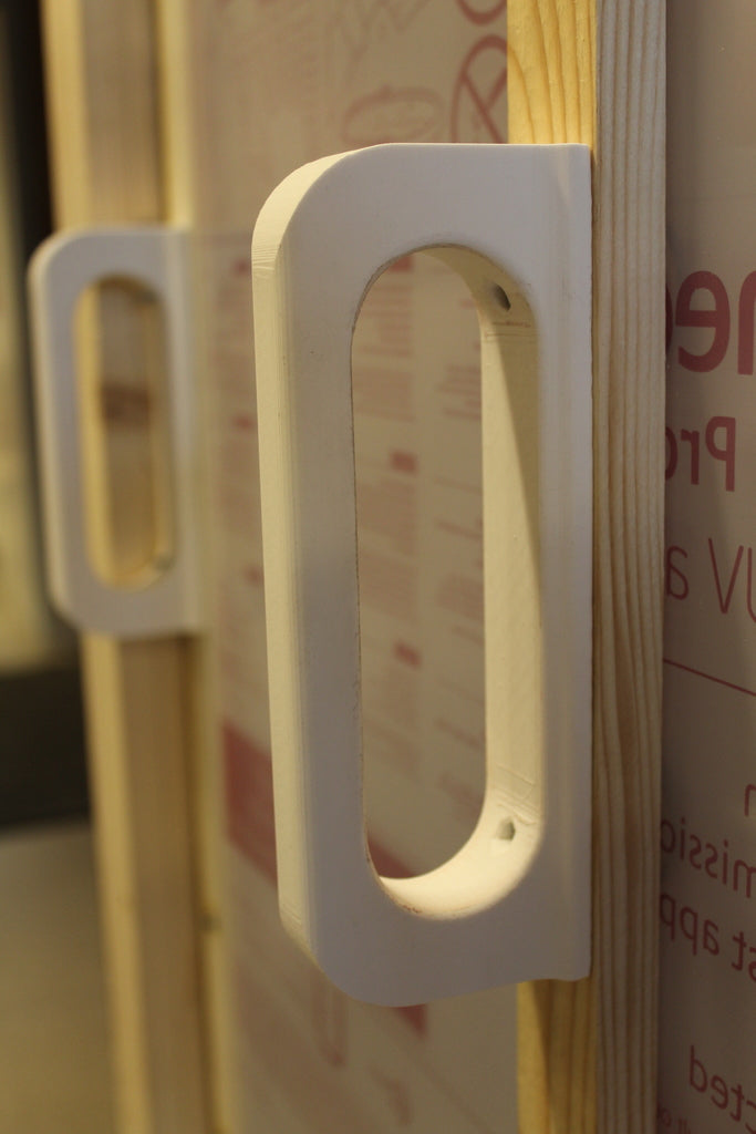 Tyto kliky pro posuvné dveře navrhl Dirk Feyerabend. Jsou kompatibilní se šrouby a maticemi o průměru 3 mm. Tato zvedací klika je praktická, snadno se instaluje a bude elegantním doplňkem vašich posuvných dveří.