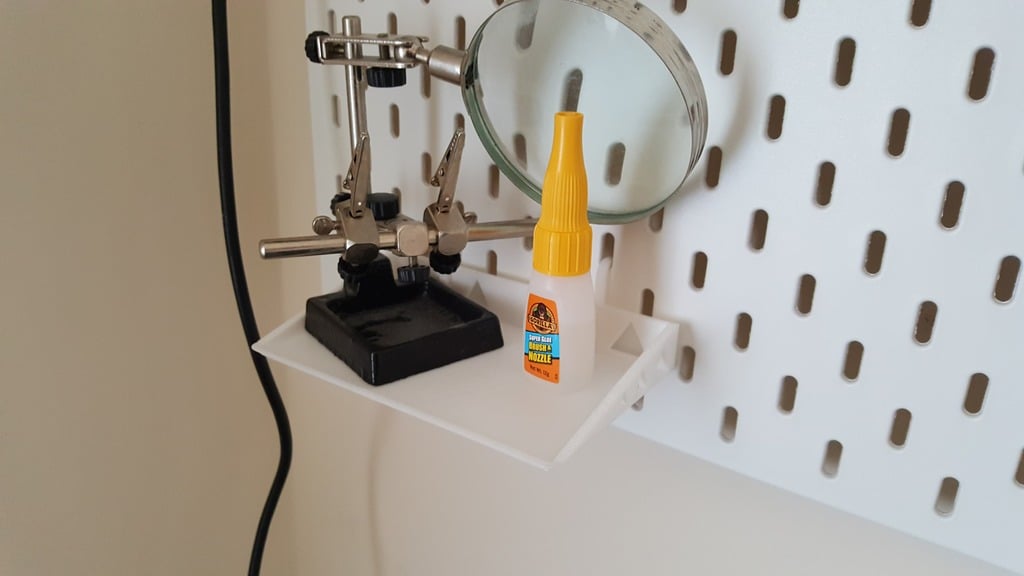Balení poliček a háčků na poličky pro systém IKEA SKÅDIS Pegboard. Navrženo tak, aby bylo možné háčky vyjmout, ale pro větší bezpečnost se doporučuje je přilepit. S tímto balením můžete snadno uspořádat a uložit své předměty efektivním a bezpečným způsobem.