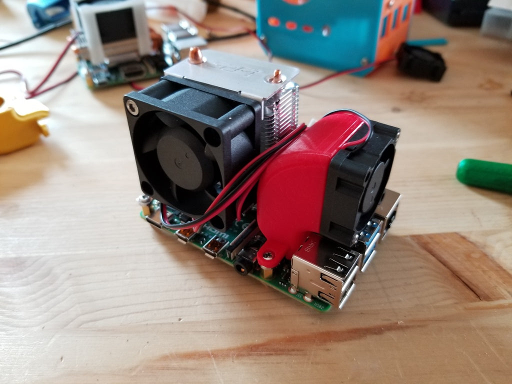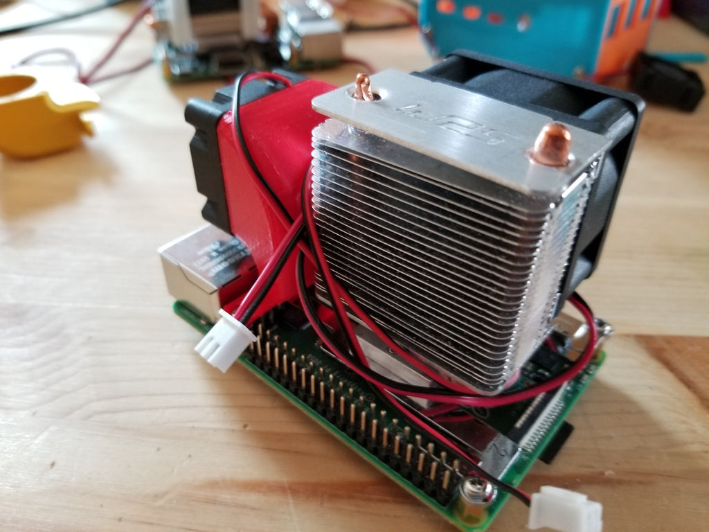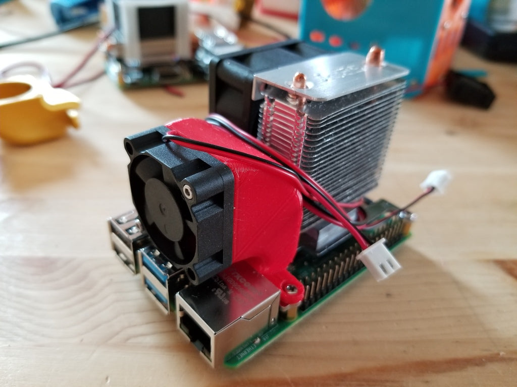 - Navrženo pro přidání sekundárního ventilátoru k Raspberry Pi 4, optimalizováno pro použití s originálním chladičem Ice Tower (ne s verzí s nízkým profilem).