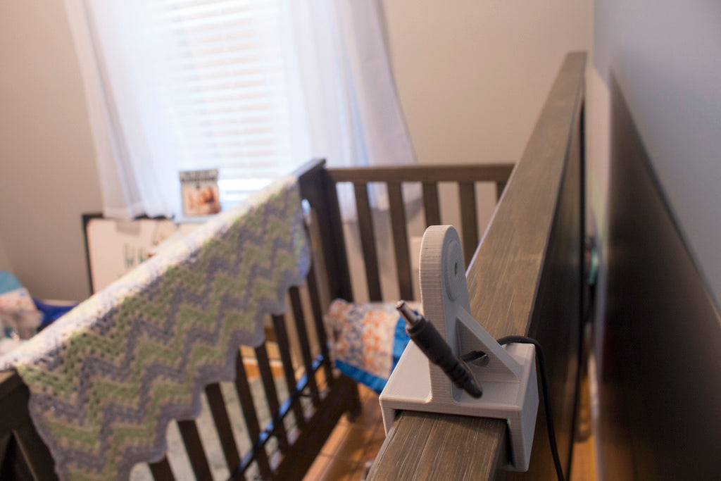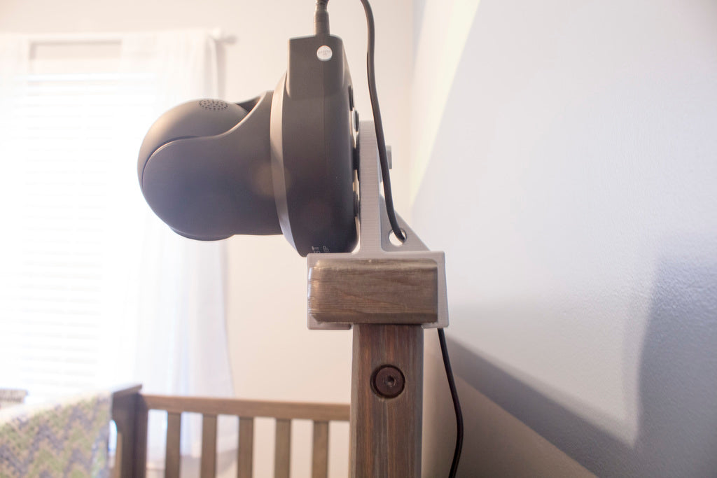 Instalace je jednoduchá, protože ke připevnění kamery k adaptéru dětské postýlky jednoduše použijete ruční šroub, který je součástí originálního adaptéru kamery na stěnu. Pro zachování čistého a uspořádaného vzhledu v dětském pokoji je adaptér vybaven chytrou dírkou v opěrce zad, která umožňuje protažení napájecího kabelu. To pomáhá skrýt kabely a poskytuje estetičtější nastavení vašeho dětského vybavení.