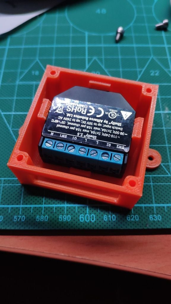 Jednoduché pouzdro pro Hue Shelly 2.5. Snadná montáž pomocí 4 šroubů M3x5 pro spolehlivou ochranu vašeho Shelly 2.5. Ideální pro domácnost nebo kancelář.
