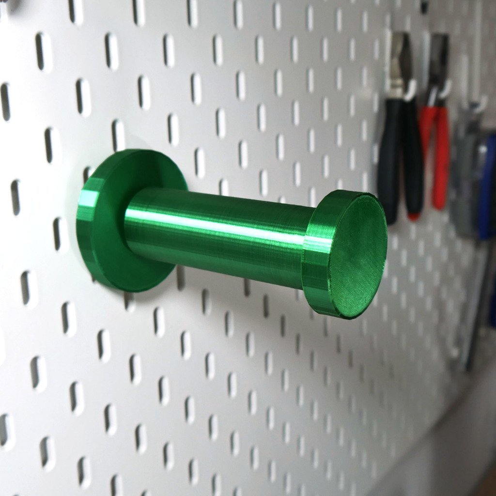 Držák na cívky Skadis je snadno sestavitelný a rozebíratelný nástroj, který se dokonale hodí k nástěnce IKEA Skadis. Skládá se ze tří dílů, které se každý šroubuje dohromady pro snadné nastavení nebo výměnu. Speciální zelená barva je vyrobena pomocí 3DJake Ultra Satin. Je to jasná volba, která udrží vaši cívku na místě zavěšenou na nástěnce.