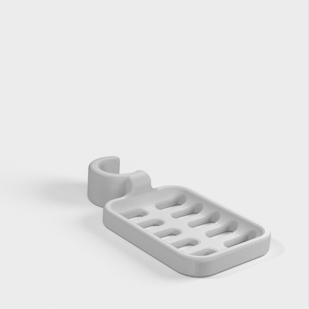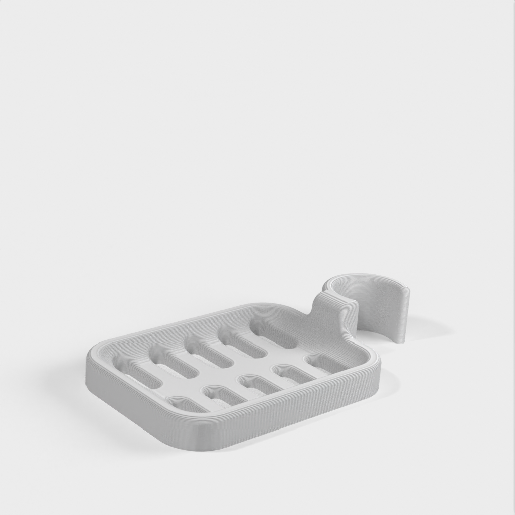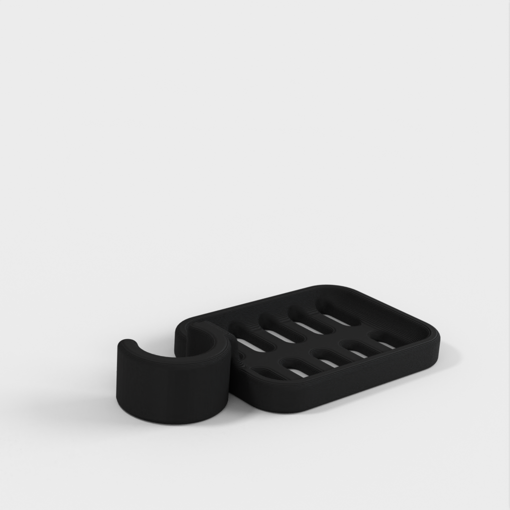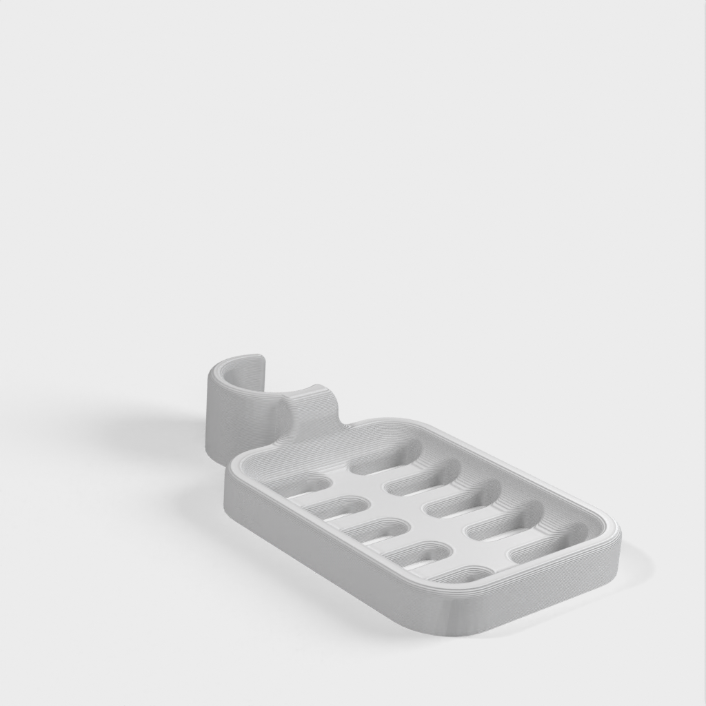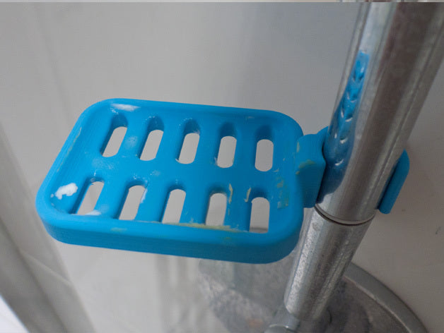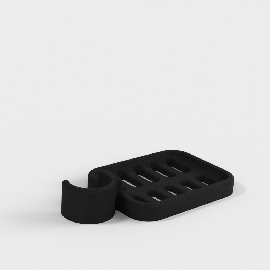 Držák mýdla do sprchy určený k upevnění na sprchovou tyč. Držák mýdla je speciálně navržen tak, aby se vešel na kulatou tyč o průměru 21,9 mm. Mějte na paměti, že držák mýdla je o něco menší. Pokud je to možné, nedoporučuje se používat PLA, protože hrozí, že se háček po nějaké době zlomí, zejména v prostředí sprchy. Jako odolnější materiál pro tento výrobek se doporučuje plast ABS.