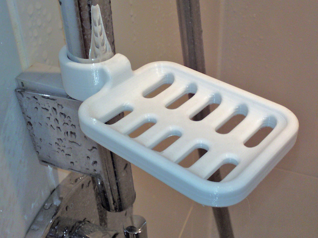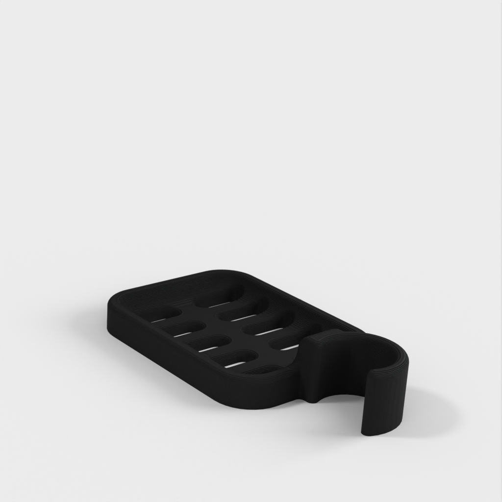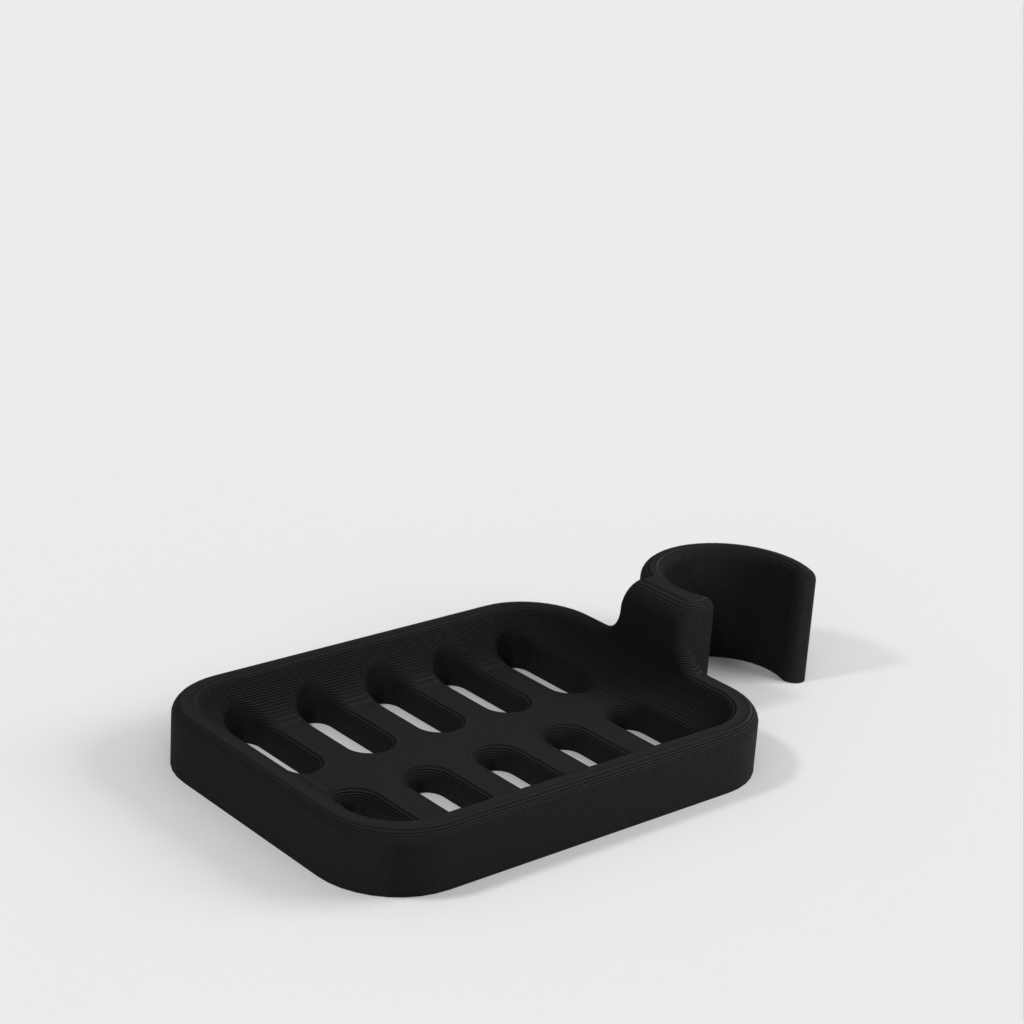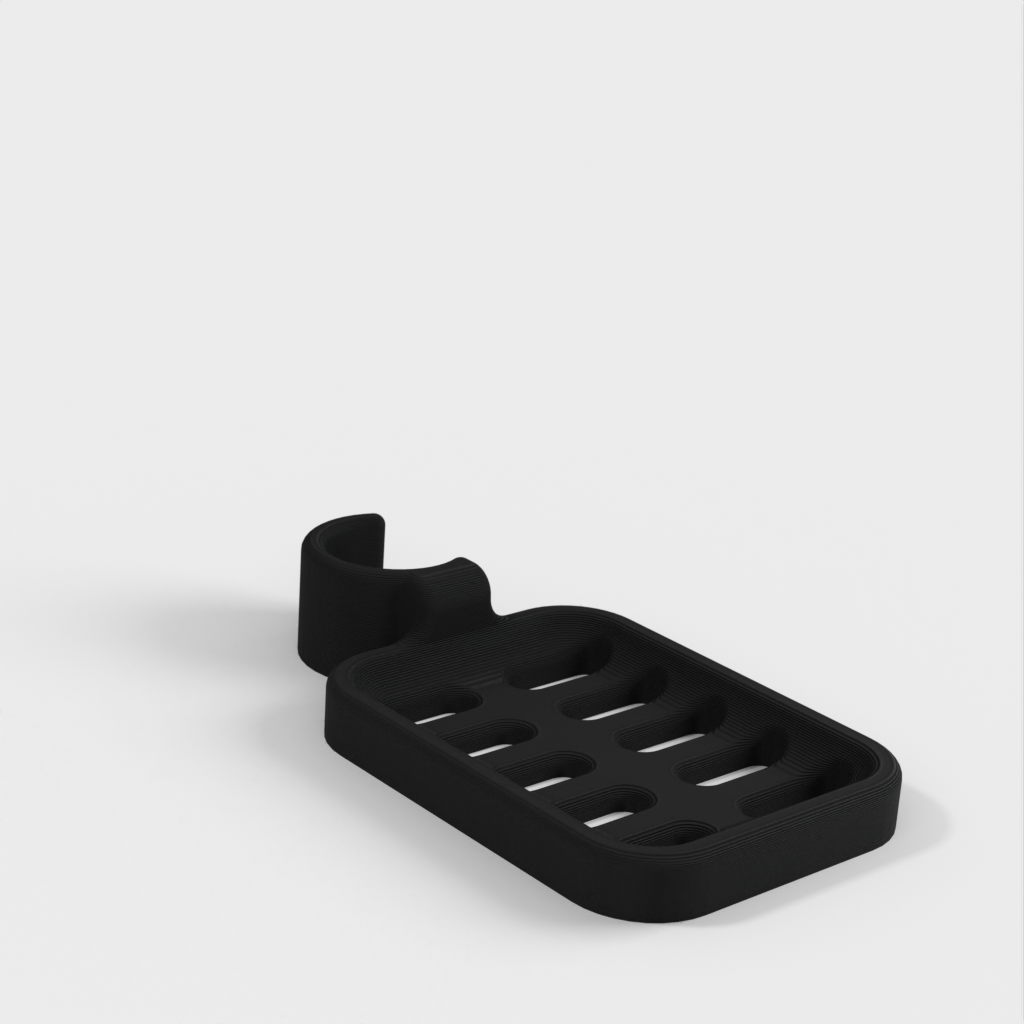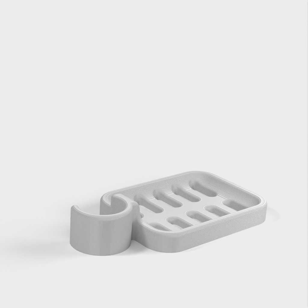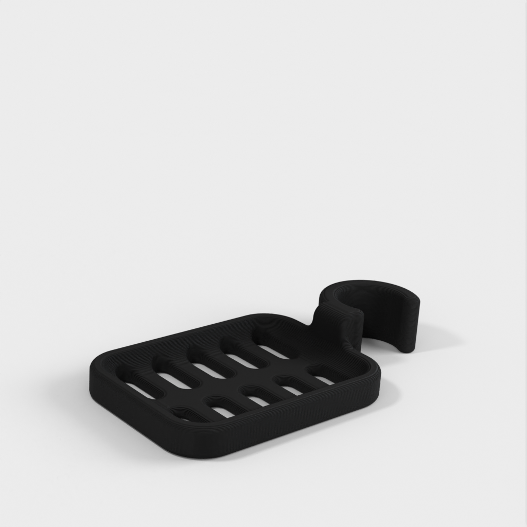 Držák mýdla do sprchy určený k upevnění na sprchovou tyč. Držák mýdla je speciálně navržen tak, aby se vešel na kulatou tyč o průměru 21,9 mm. Mějte na paměti, že držák mýdla je o něco menší. Pokud je to možné, nedoporučuje se používat PLA, protože hrozí, že se háček po nějaké době zlomí, zejména v prostředí sprchy. Jako odolnější materiál pro tento výrobek se doporučuje plast ABS.