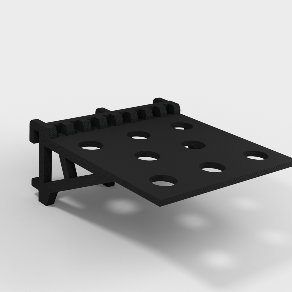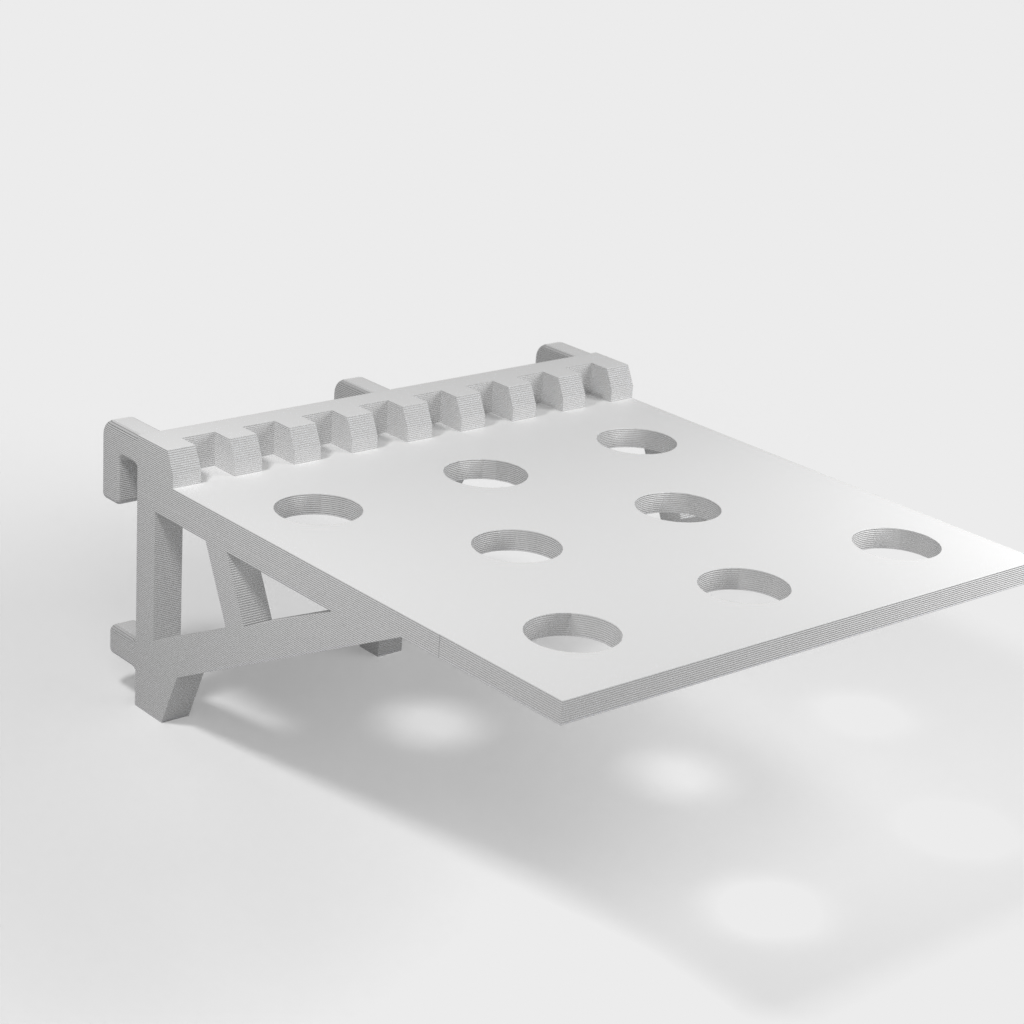 Robustní držák šroubů pro IKEA Skadis Pegboard. Ideální pro úhledné a uspořádané uložení šroubováků ve vaší dílně, kůlně nebo pracovním vozidle. Lze jej snadno namontovat přímo na děrovanou desku pomocí několika šroubů pro efektivnější skladování.