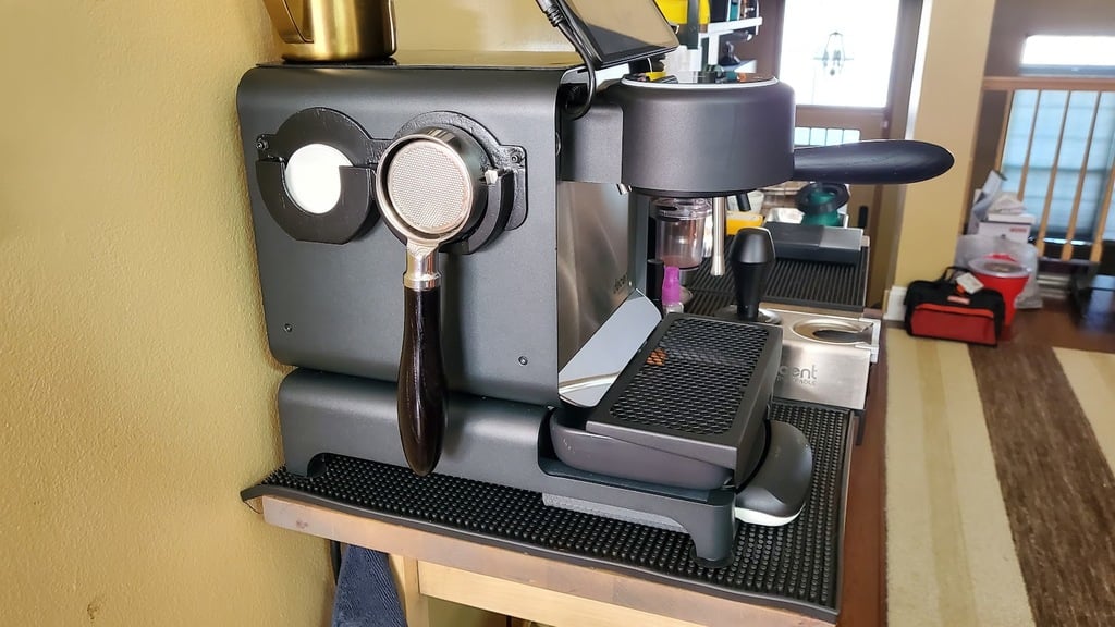 Optimalizujte svůj kávový koutek pomocí tohoto praktického držáku portafilteru a puku, který je navržen speciálně pro váš stroj Decent Espresso DE1. Toto řešení držáku pomáhá vytvořit organizované a efektivní nastavení, takže vaše nezbytné příslušenství pro espresso je vždy na dosah ruky.