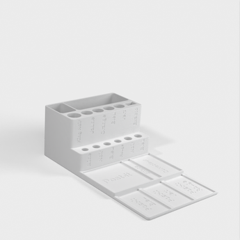 Jedná se o stolní organizér určený k efektivnímu uspořádání každodenních kancelářských pomůcek. Tento organizér poskytuje úložný prostor pro různé pomůcky, jako jsou pera, tužky, fixy a další psací potřeby, které jsou nezbytné pro každodenní používání v kanceláři. Udržujte svůj pracovní stůl čistý a uklizený a zvyšte svou produktivitu tím, že budete mít své kancelářské nástroje snadno na dosah.