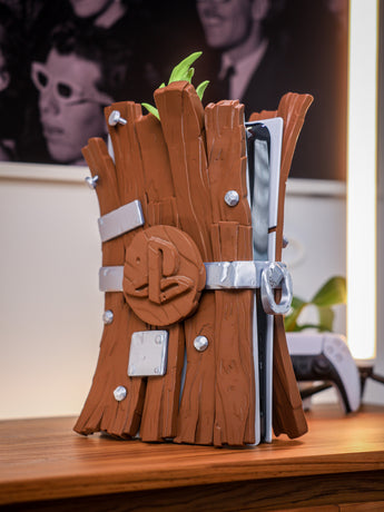 Toto pouzdro pro PS5 Slim Digital promění vaši konzoli v jedinečné fantasy mistrovské dílo. Stylový design se vyznačuje dřevěnými panely, kovovými výztuhami a detaily trávy. Modulární kryt zajišťuje dobré proudění vzduchu a zároveň dodá vaší herní sestavě rustikální a okouzlující vzhled.