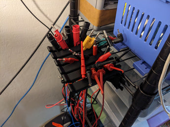 Tento závěs kabelů je navržen tak, aby vám poskytl flexibilní a organizované úložné řešení pro vaše testovací vodiče, kabely a další příslušenství. Snadno se montuje na okraj drátěných polic HDX – nebo podobných polic s trubkami 7/16" – a lze jej umístit buď před polici, nebo na její stranu.