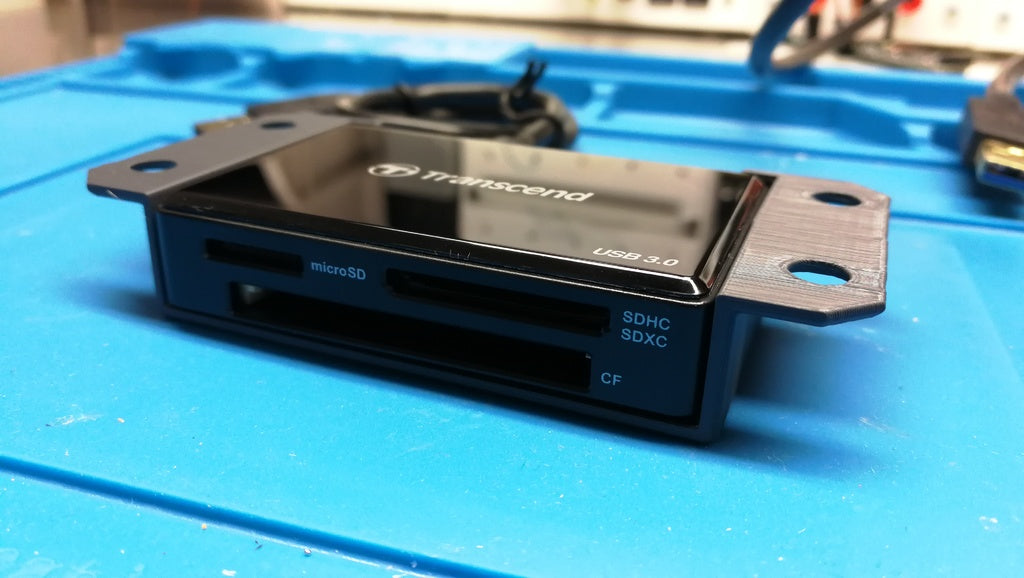Držák je navržen tak, aby vyhovoval modelům s vnějšími rozměry podobnými Transcend TS-RDF8K a očekává se, že většina novějších verzí odpovídajících čteček karet bude také bez problémů pasovat. Tato konstrukce zajišťuje, že vaše čtečka SD karet je bezpečně připevněna a vždy po ruce, když ji potřebujete, aniž by zbytečně zabírala místo na stole.