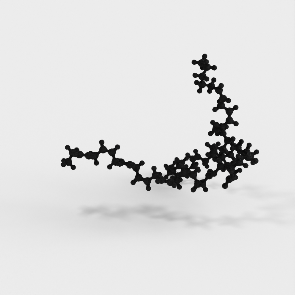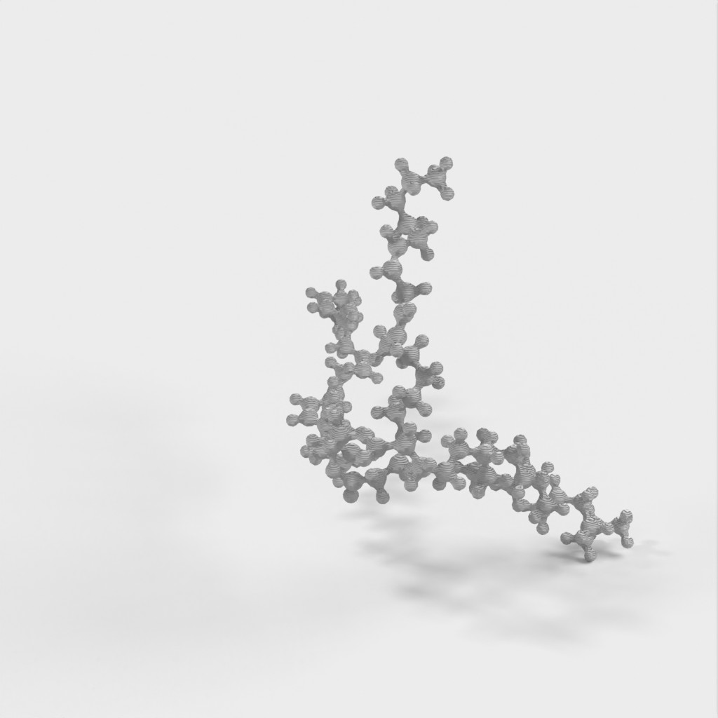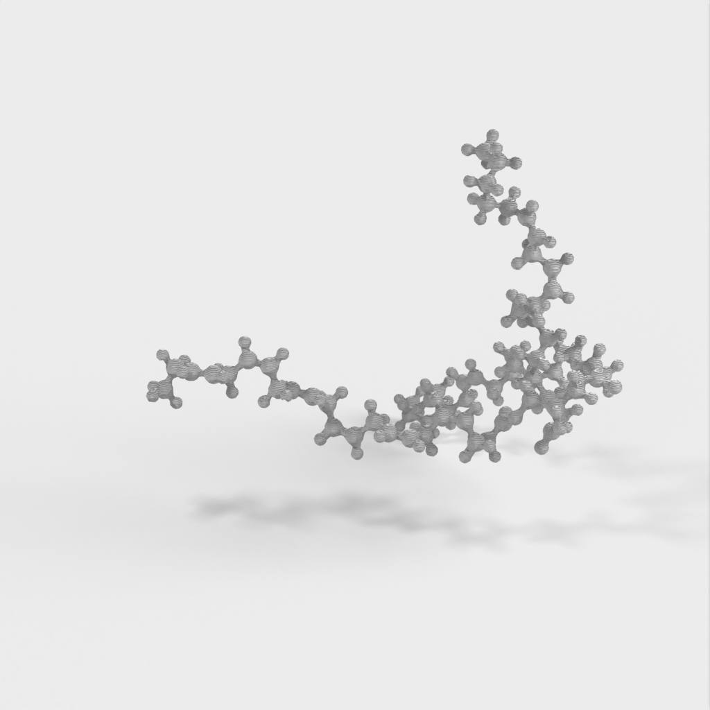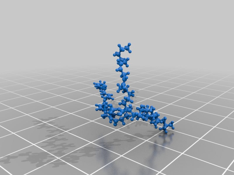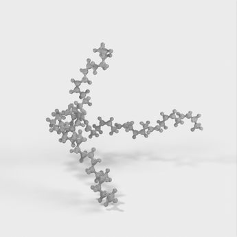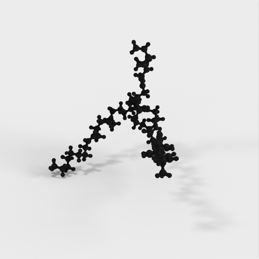 Molekulární model triaclglycerolu v atomárním měřítku, který lze použít ve 3D. Použijte tento model k výuce dětí o chemii, zejména v souvislosti s různými aspekty stravování a stavebními kameny a energií v těle (tento model představuje jednoduchý tuk).