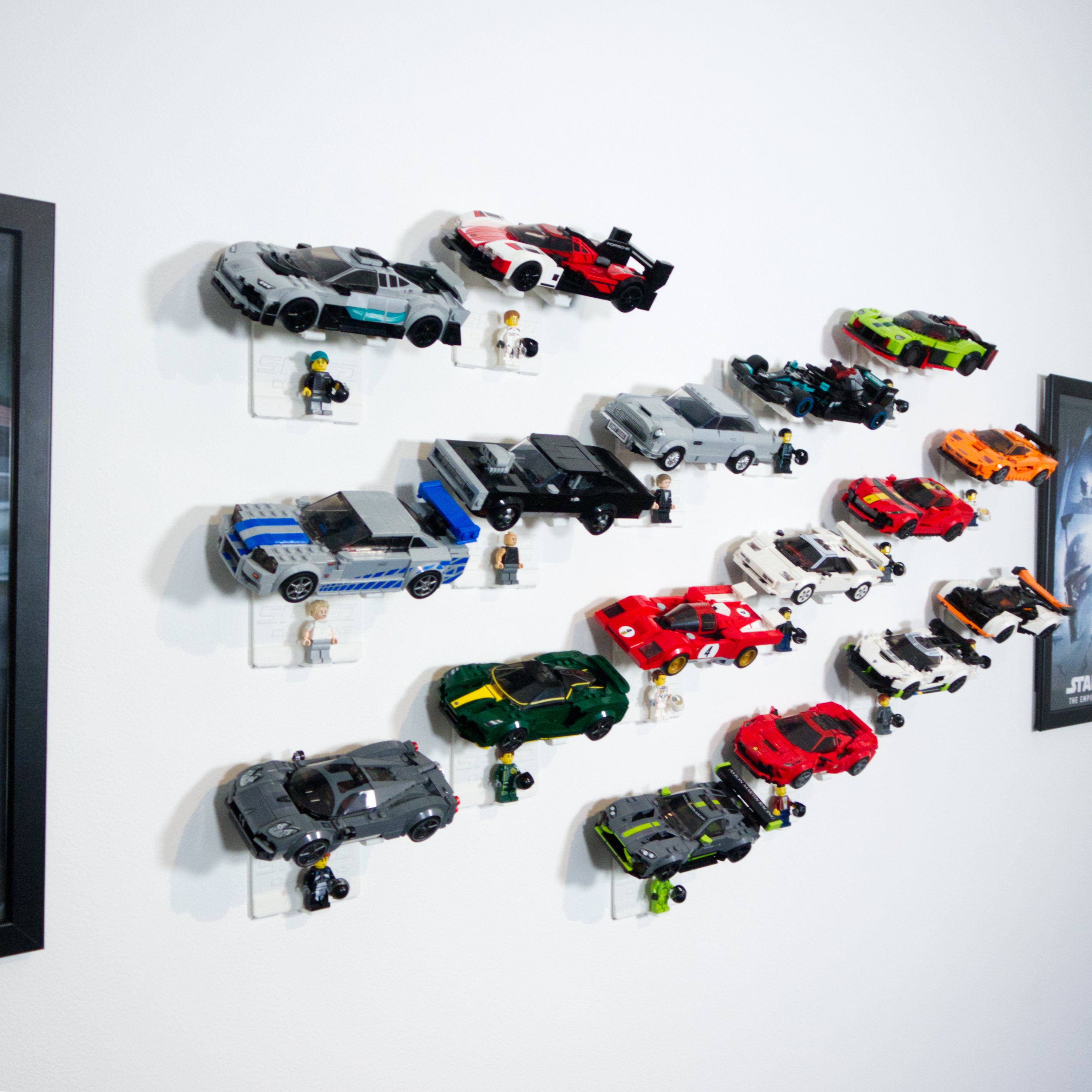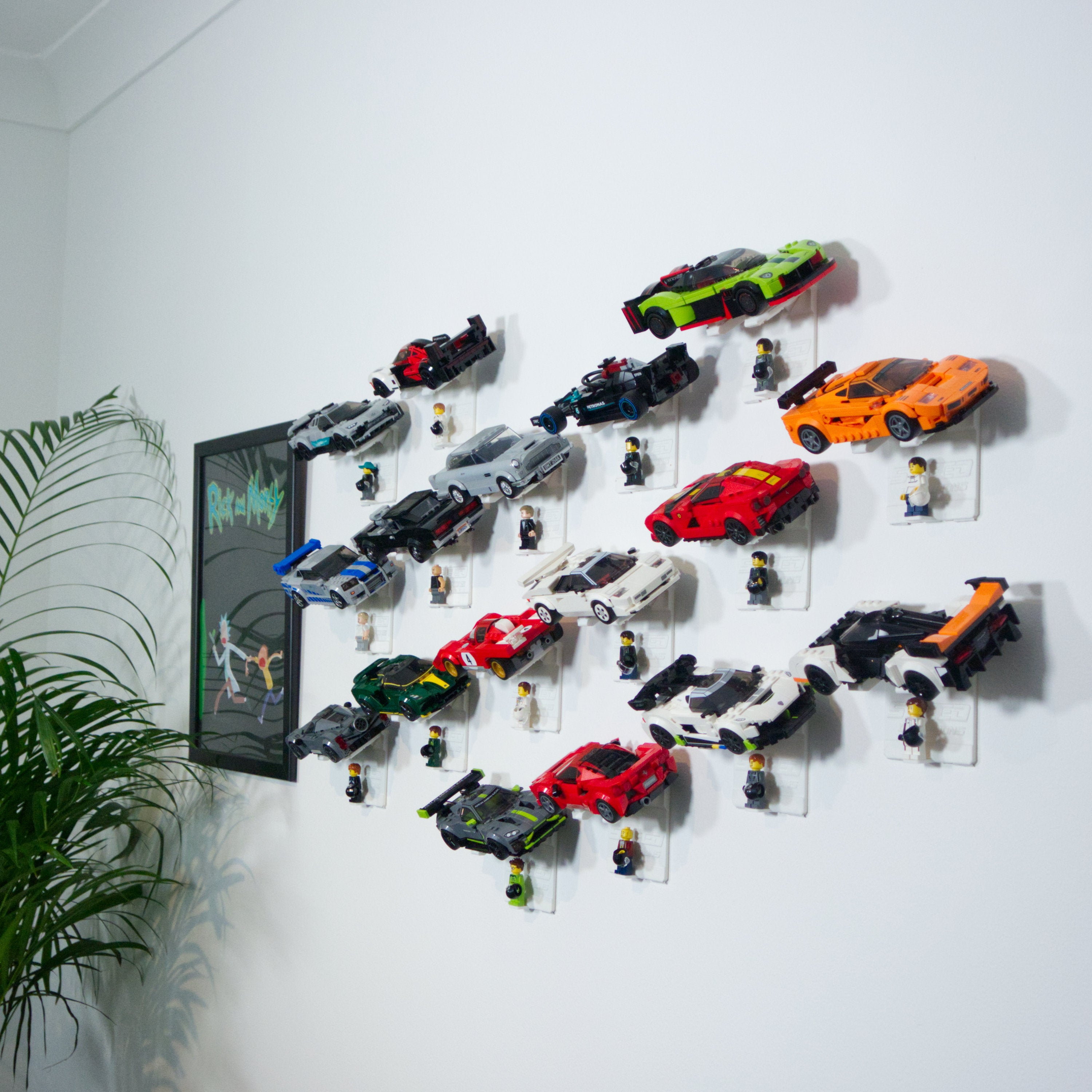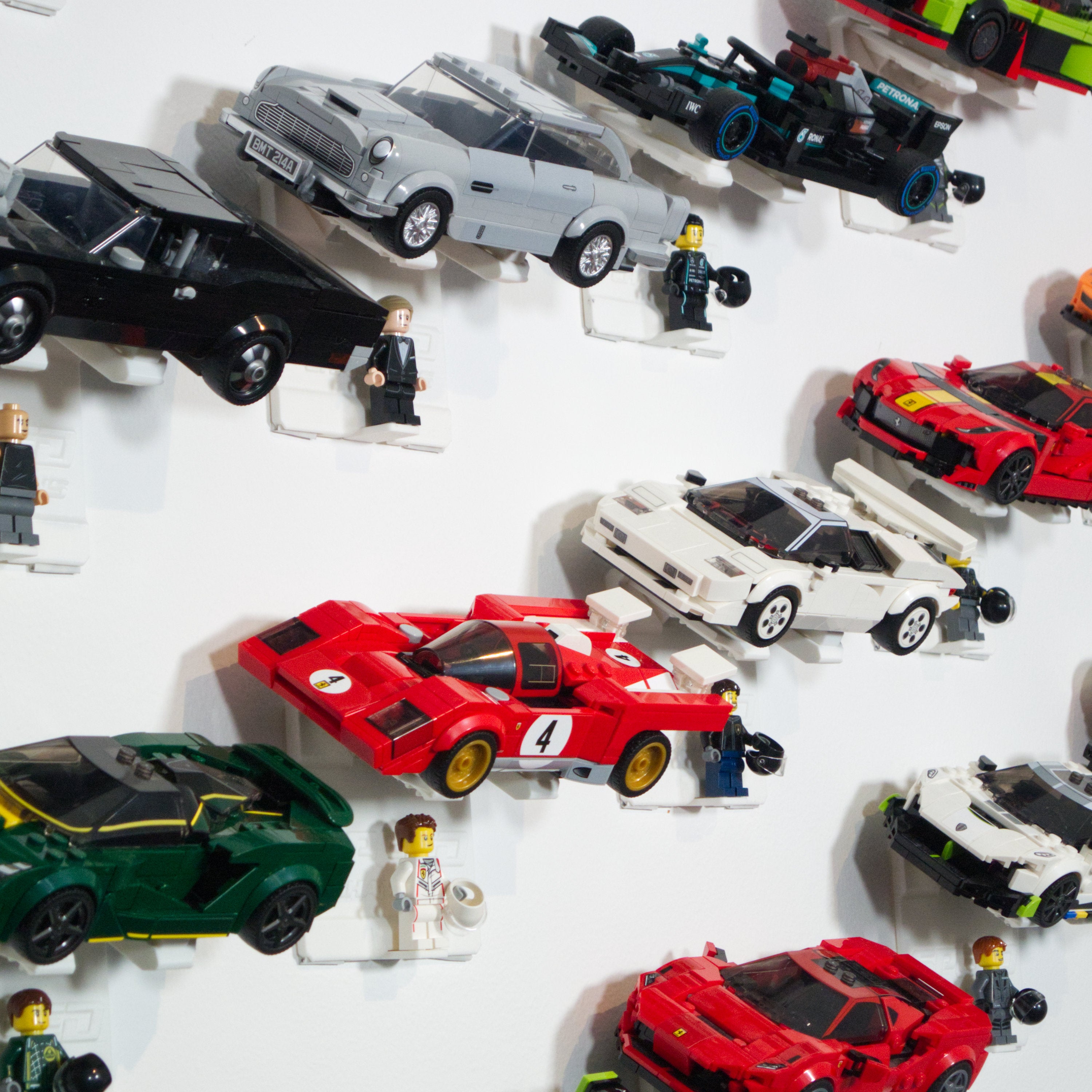 Dette vægophæng gør det muligt at udstille dine LEGO Speed Champions biler på væggen. Systemet inkluderer forskellige adaptere, så det passer til næsten alle modeller, både nye og gamle. Bilen sidder sikkert fast, og der medfølger en hylde, så minifiguren kan stå ved siden af. Monteres med enten skruer eller tape.