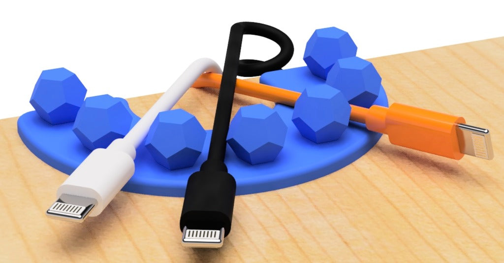 Tento držák USB kabelů je navržen jako pravidelný dvanáctistěn a nabízí praktické a stylové řešení pro uspořádání vašich kabelů. Díky svému jedinečnému geometrickému designu přispívá nejen k uklizenému stolu, ale také k moderní estetice vašeho pracovního prostoru nebo domova. Použijte tento držák kabelů, abyste zabránili zamotání nebo pádu kabelů USB za nábytek. Jeho tvar a hmotnost zajišťují, že vaše kabely zůstanou na svém místě a jsou snadno dostupné, když je potřebujete. Ideální a funkční doplněk do každého prostoru, kde je problém s nepořádkem v kabelech.