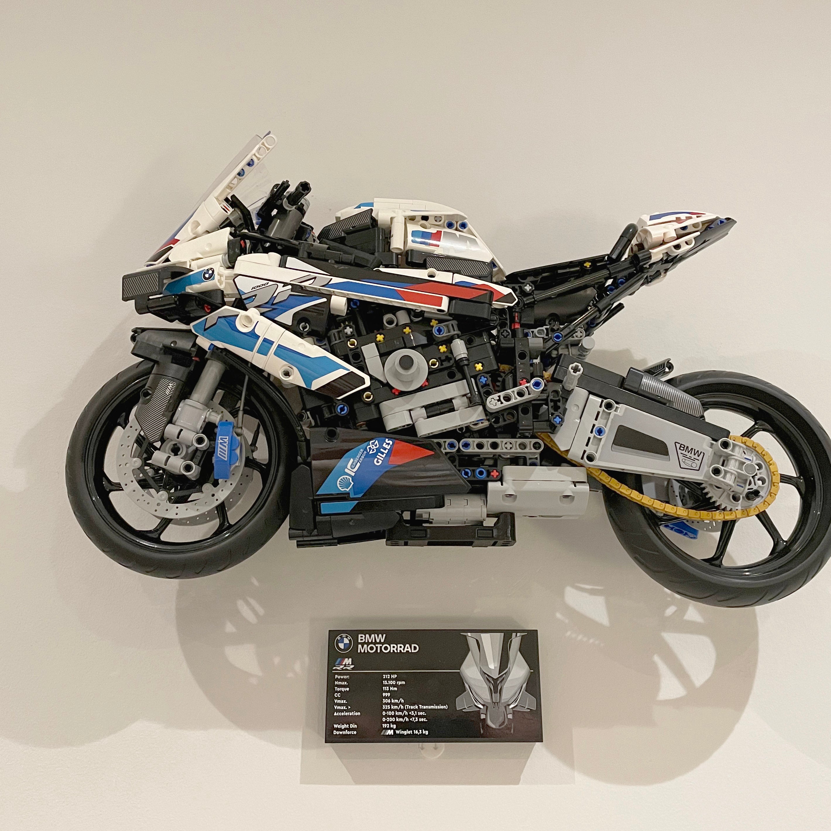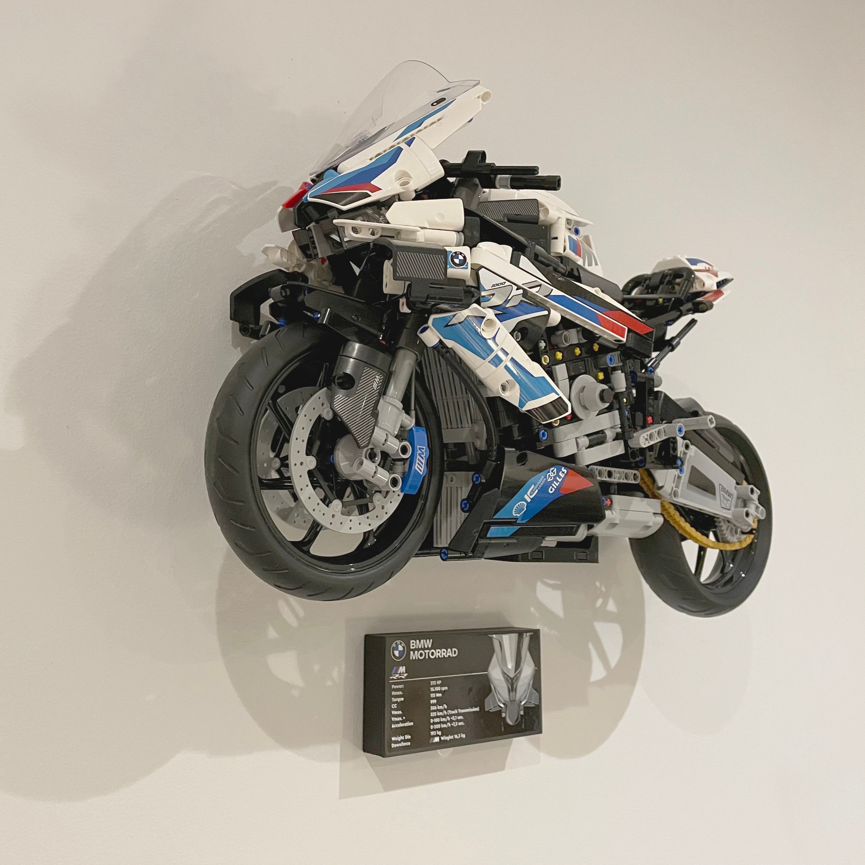 Dette vægbeslag gør det muligt at fremvise din BMW M 1000RR 42130 elegant på væggen. Det kobles sikkert til modellen via de originale technic-stifter og kræver kun én skrue til montering. Der medfølger desuden en separat holder til informationspladen for en komplet præsentation.