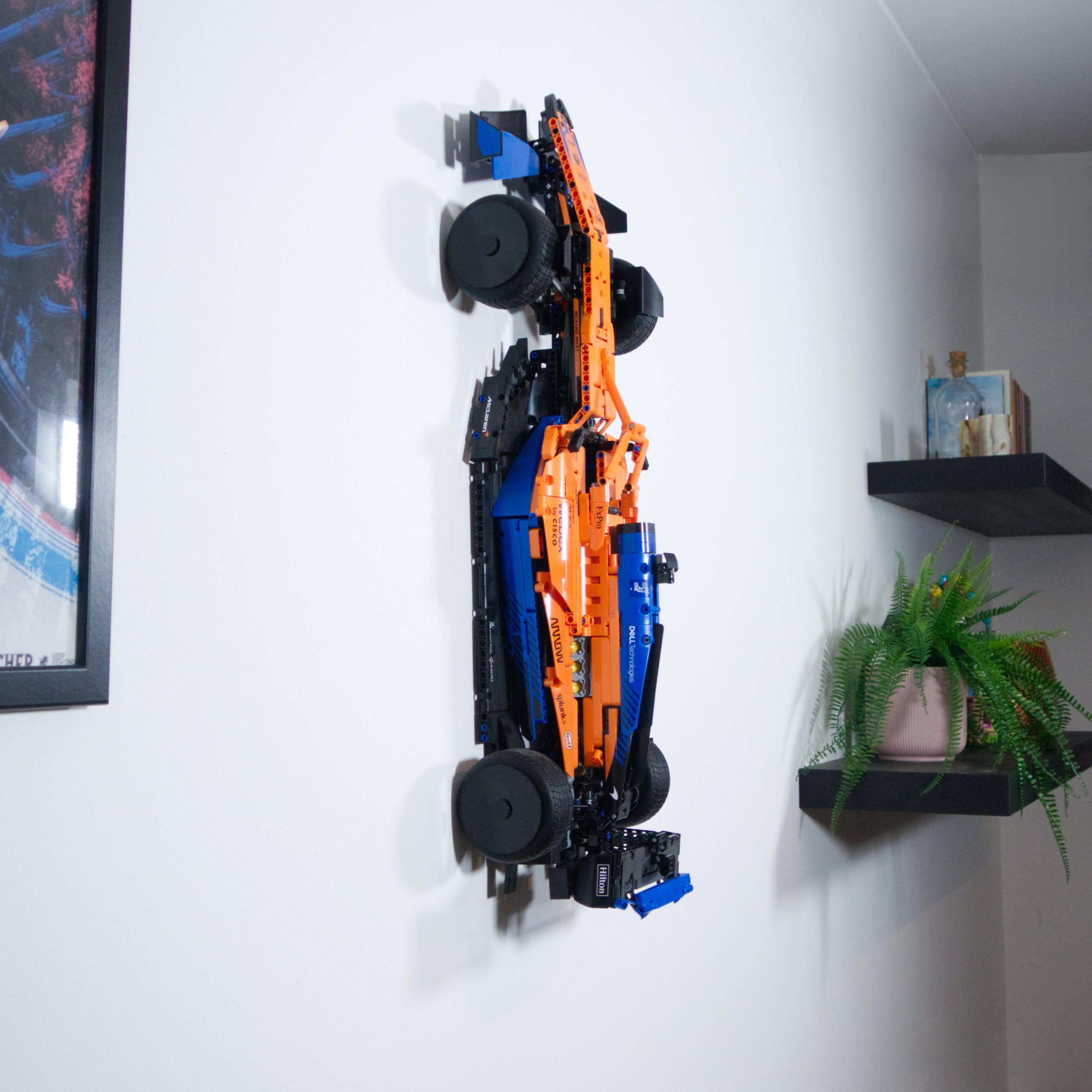 Dette vægbeslag er specifikt udformet til LEGO Technic McLaren Formel 1 racerbilen. Det gør det muligt at præsentere modellen enten vandret eller lodret tæt mod væggen. Beslaget er konstrueret således, at bilen let kan tages ned og sættes op igen efter behov.