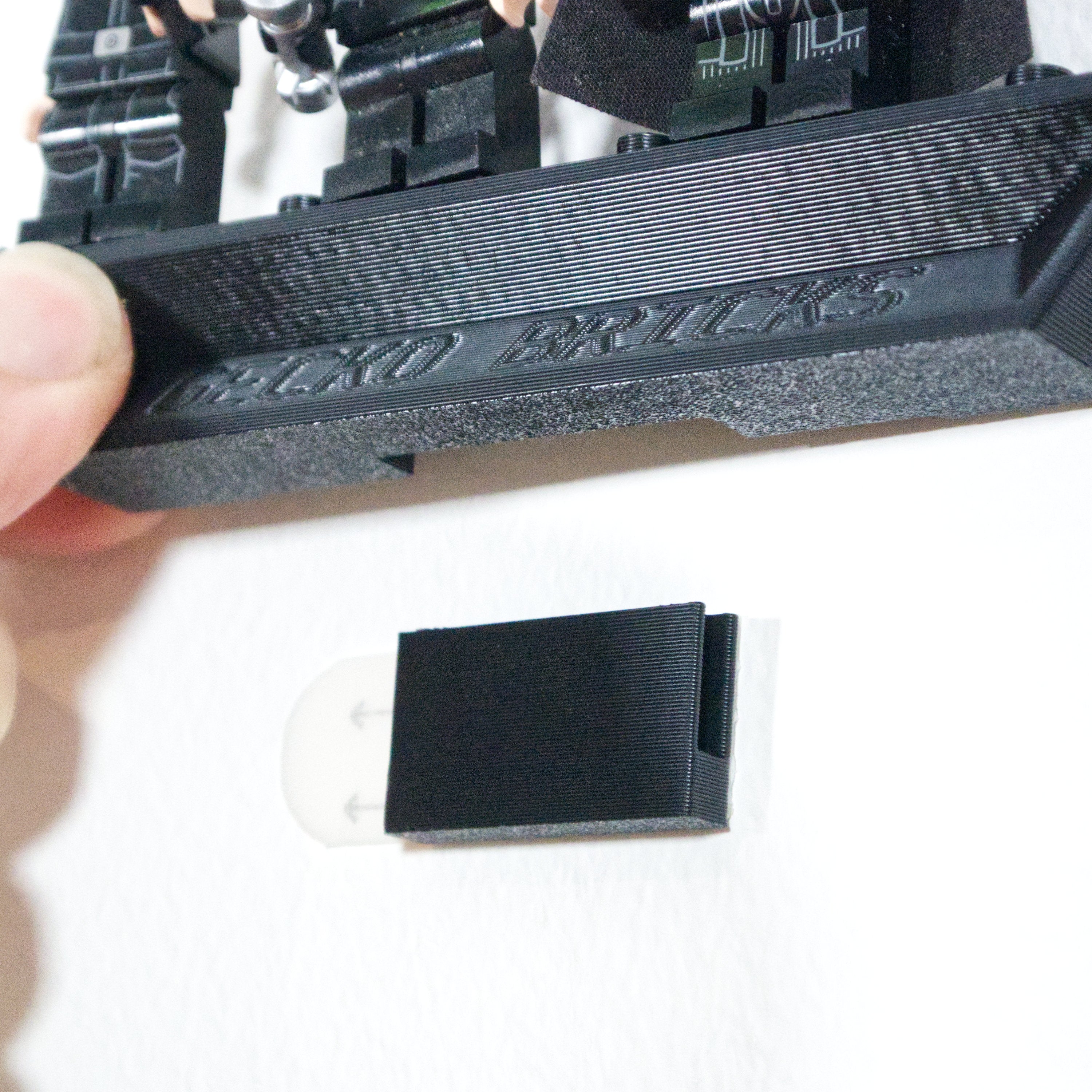- Der medfølger et separat display til minifigurer, som kan monteres med tape.