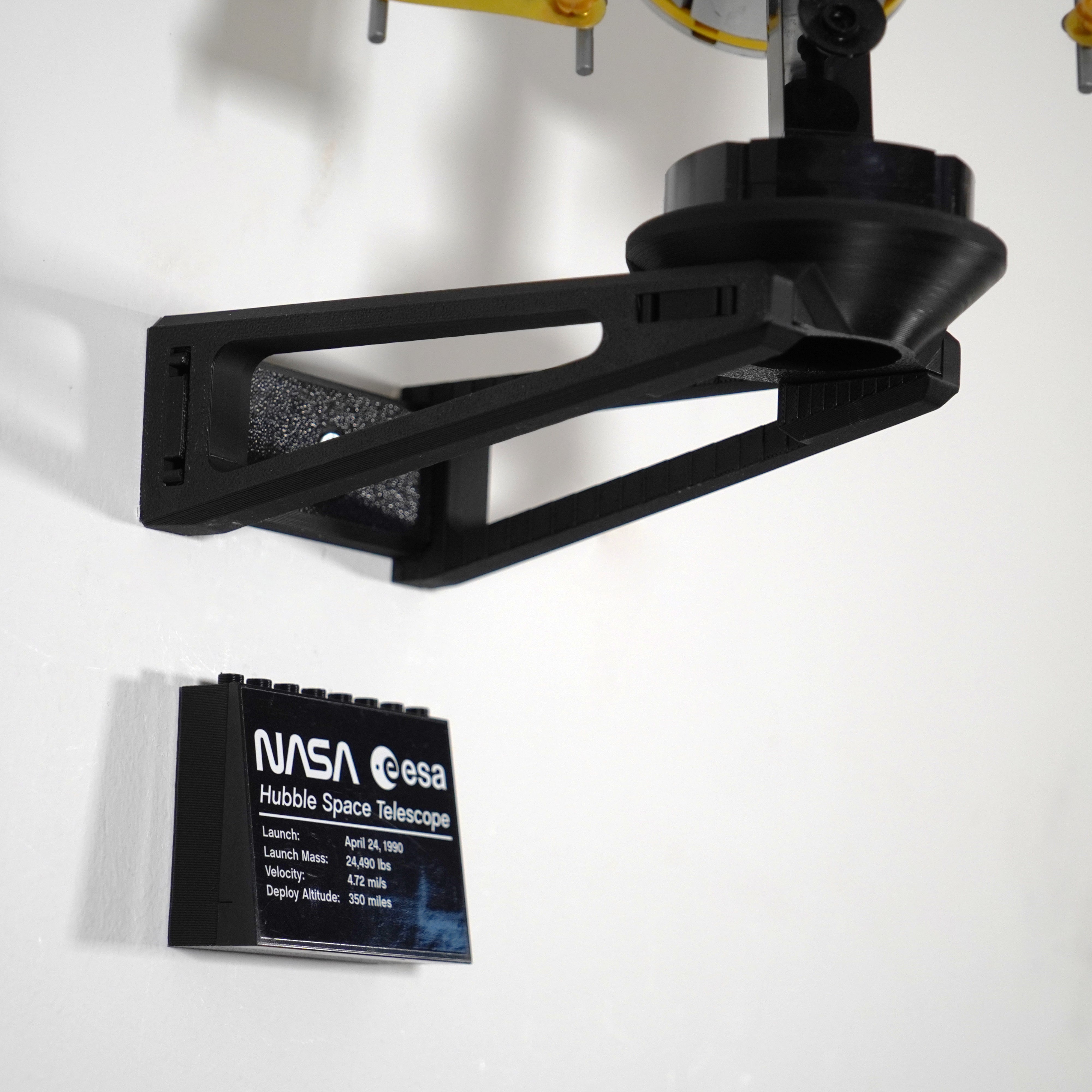 Udstil dit Lego Hubble Rumteleskop sikkert med dette vægophæng. Det er designet til at holde den originale stander og giver mulighed for at dreje teleskopet til den ønskede vinkel. Løsningen kræver kun én montering i væggen, hvilket gør det nemt at præsentere modellen flot i hjemmet.