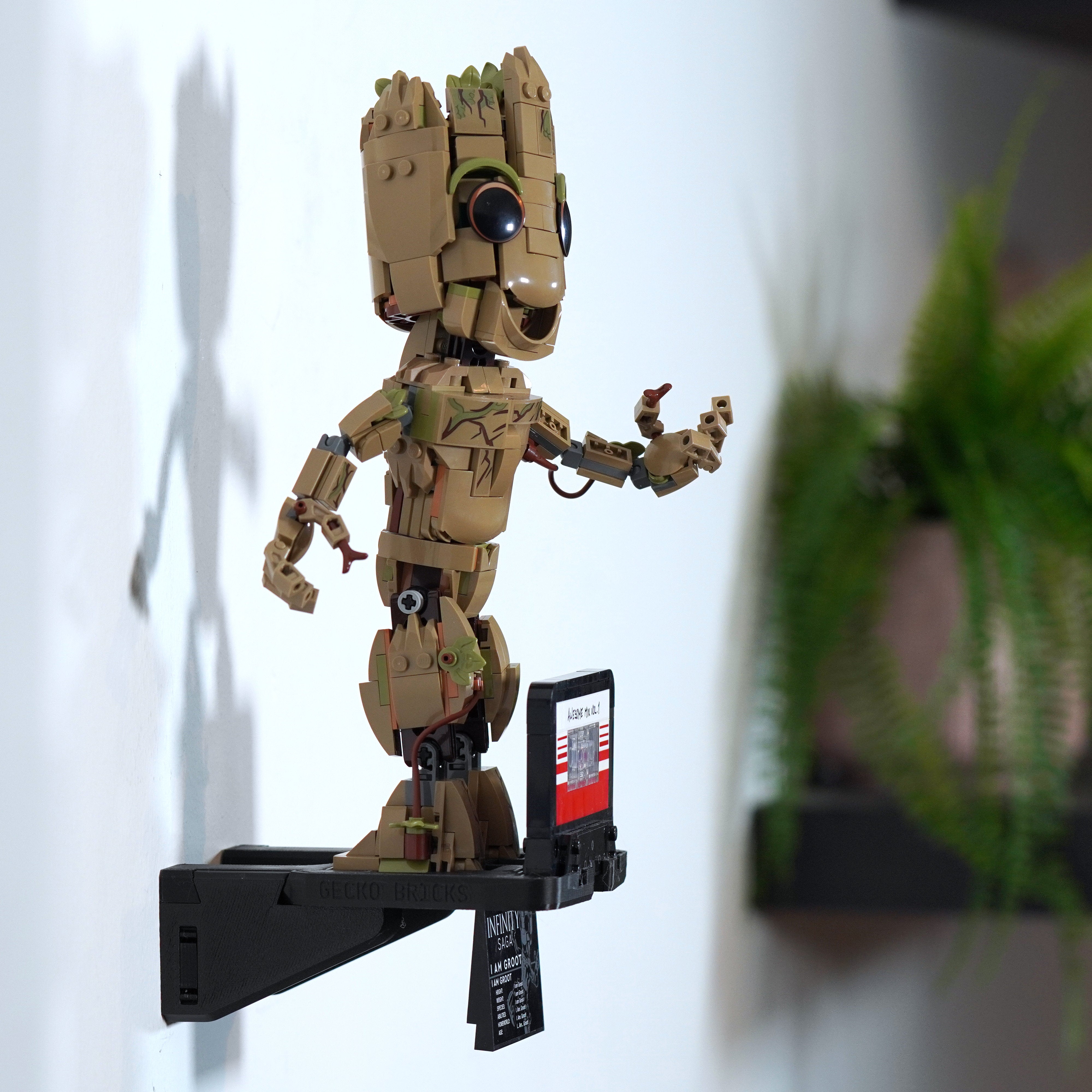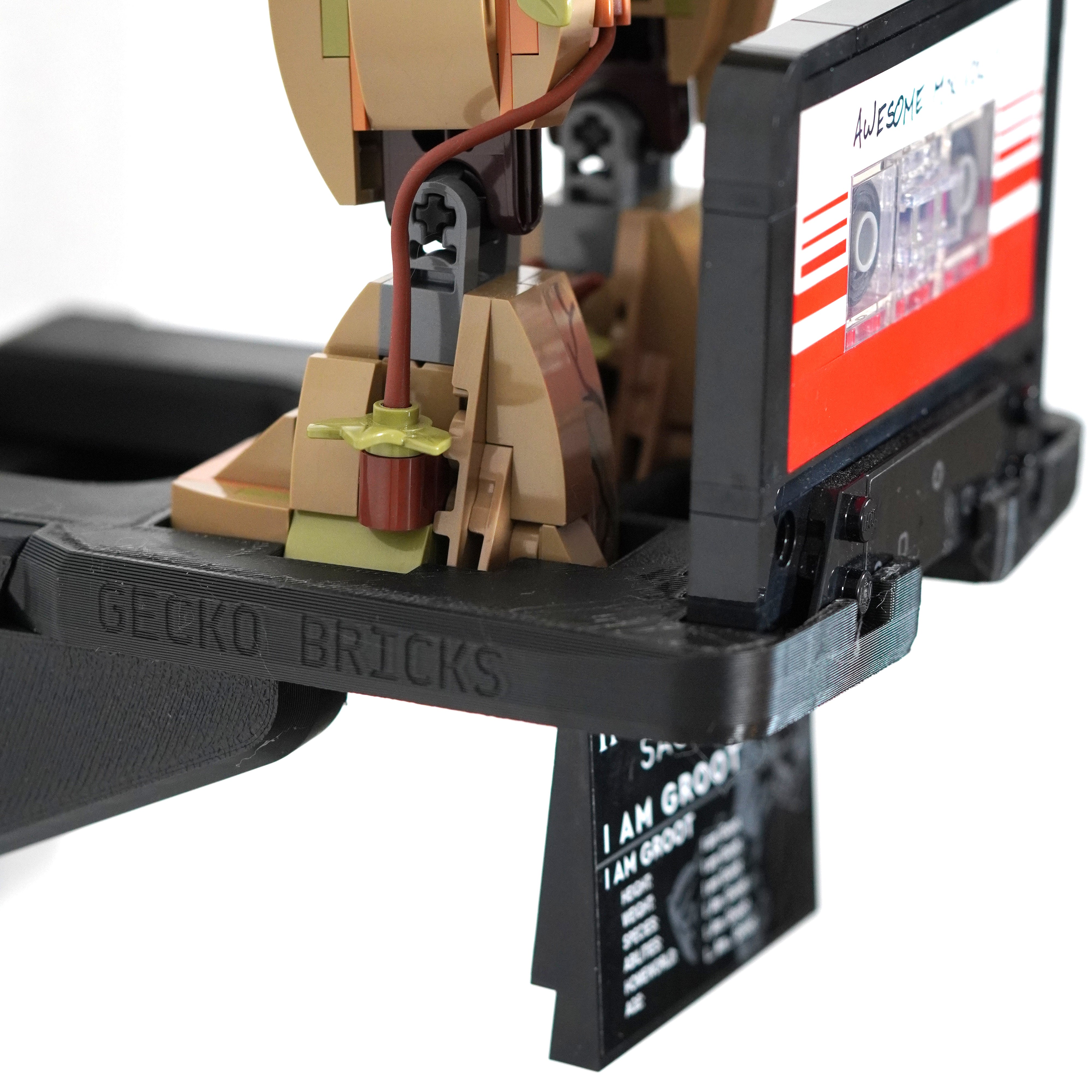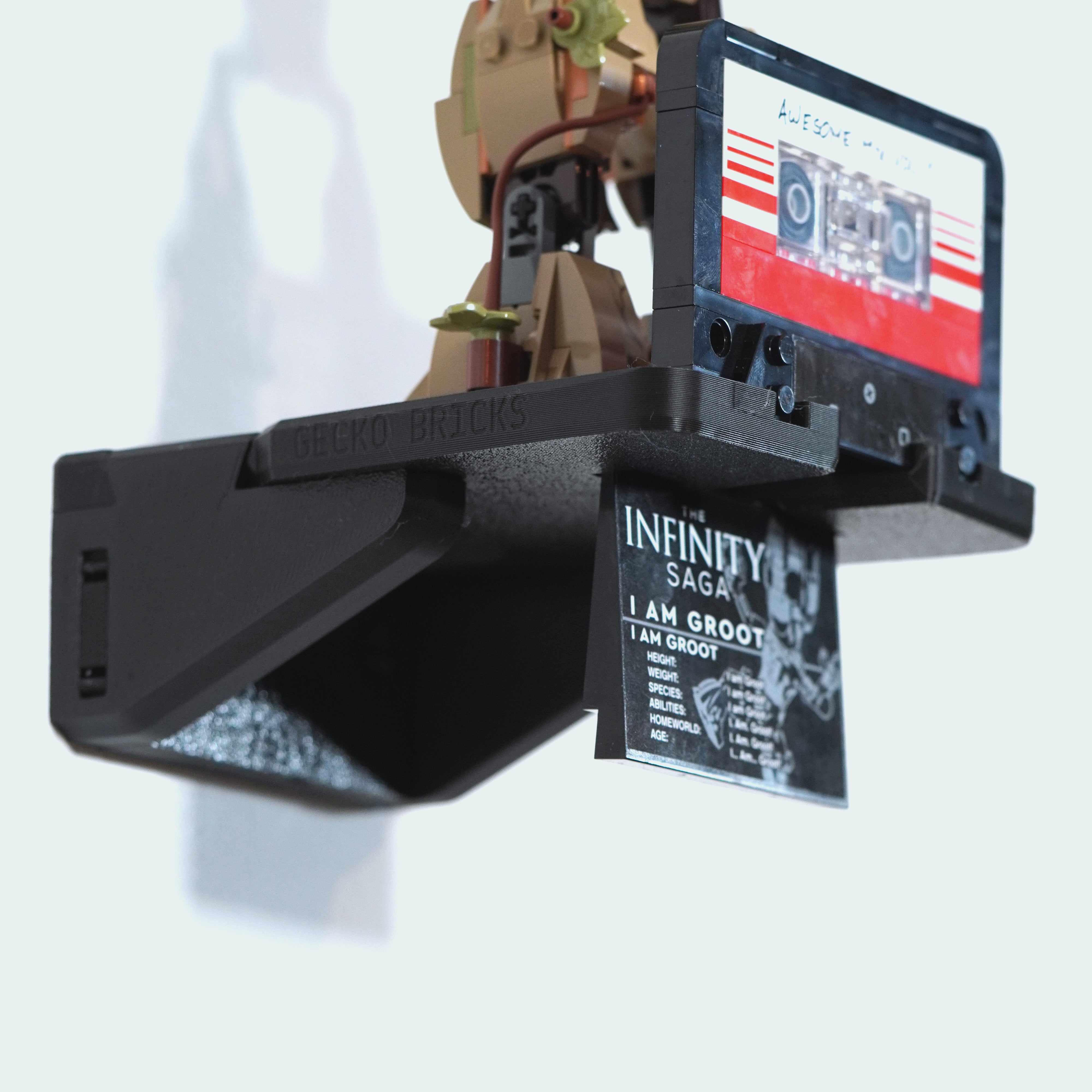 Dette vægophæng er designet specifikt til Marvel I Am Groot sættet (76217). Det gør det muligt at præsentere figuren elegant på væggen, samtidig med at den nemt kan tages ned ved behov. Beslaget har desuden en dedikeret plads til både informationskortet og det medfølgende kassettebånd for en komplet udstilling.