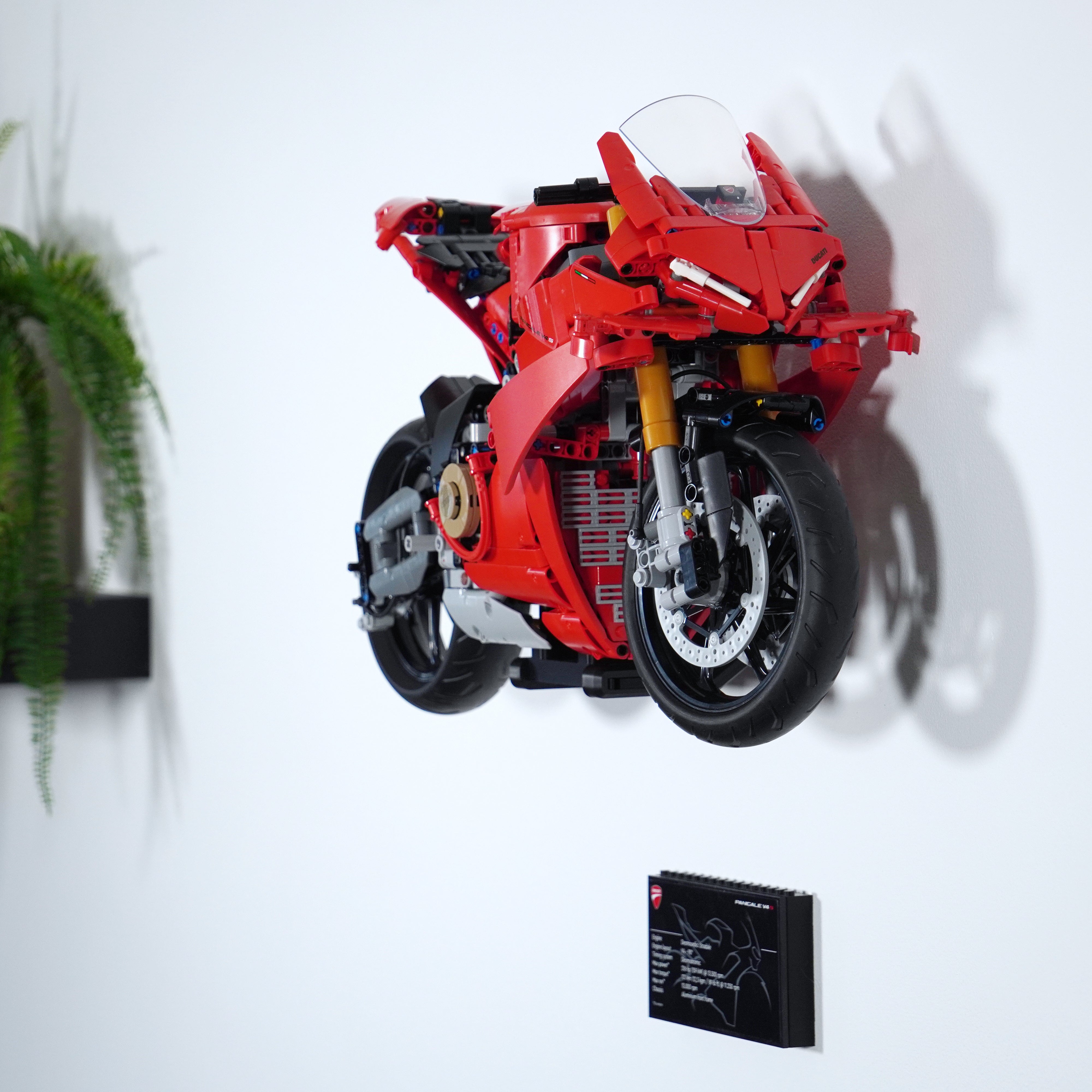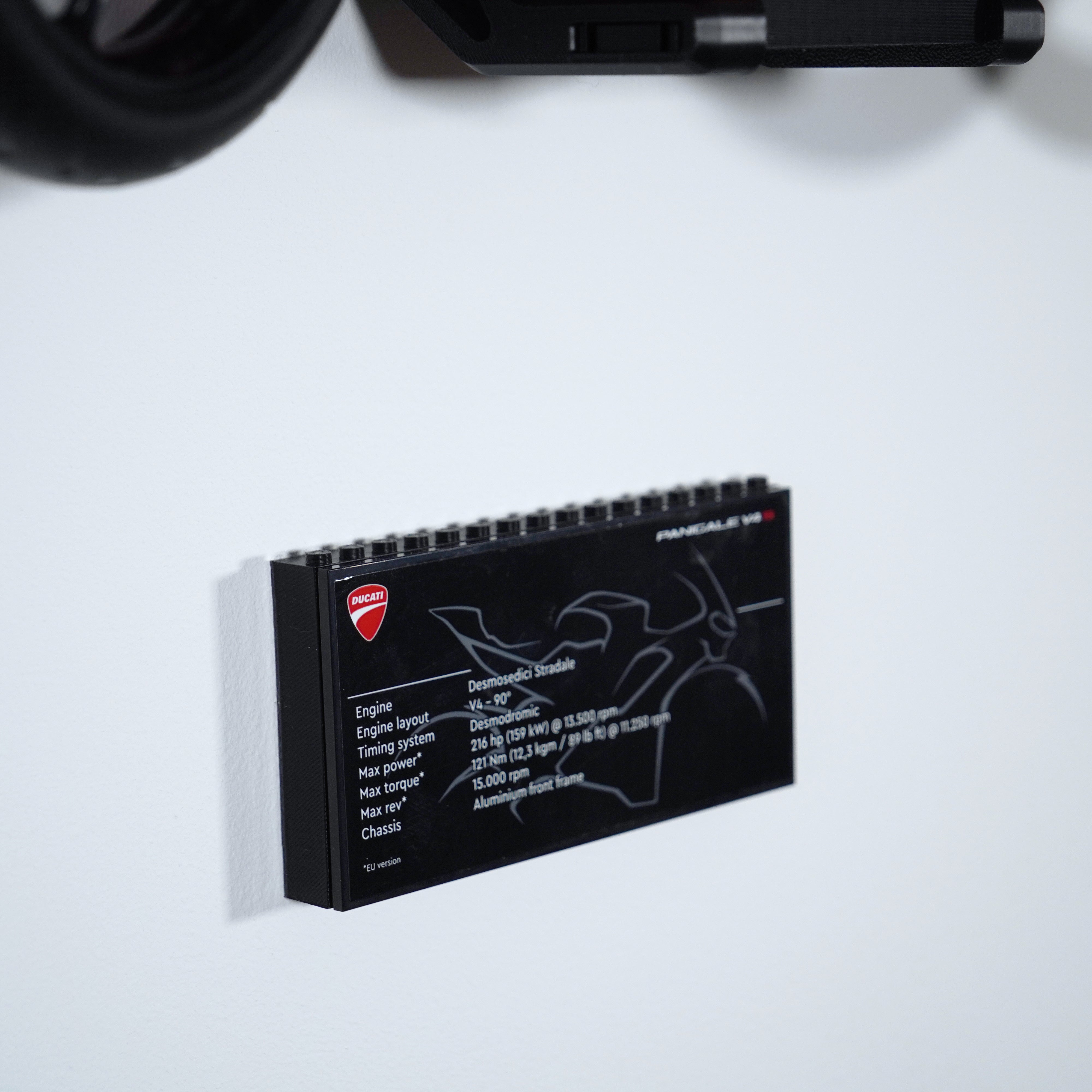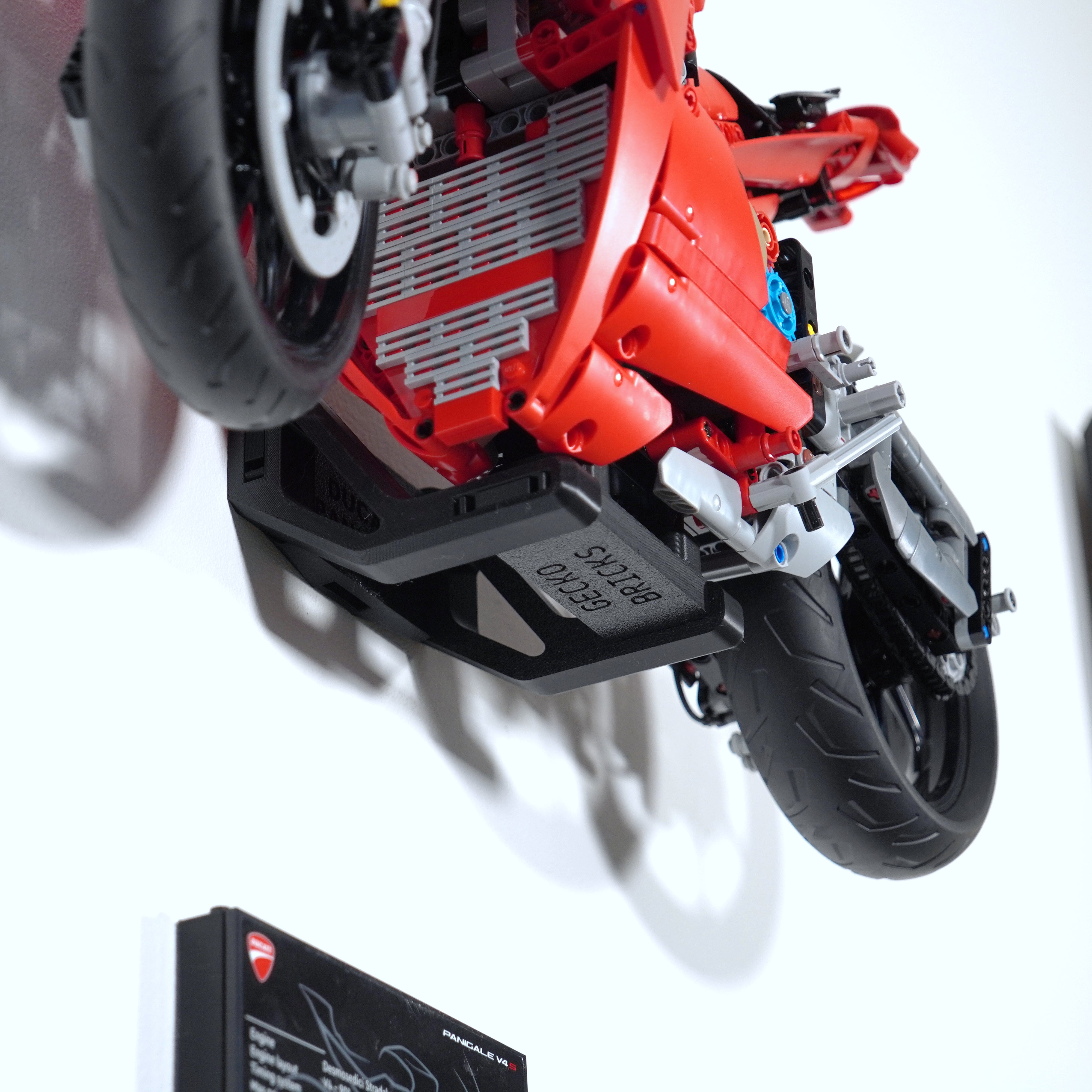 - Nástěnný držák navržený speciálně pro model Technic Ducati Panigale V4 S.