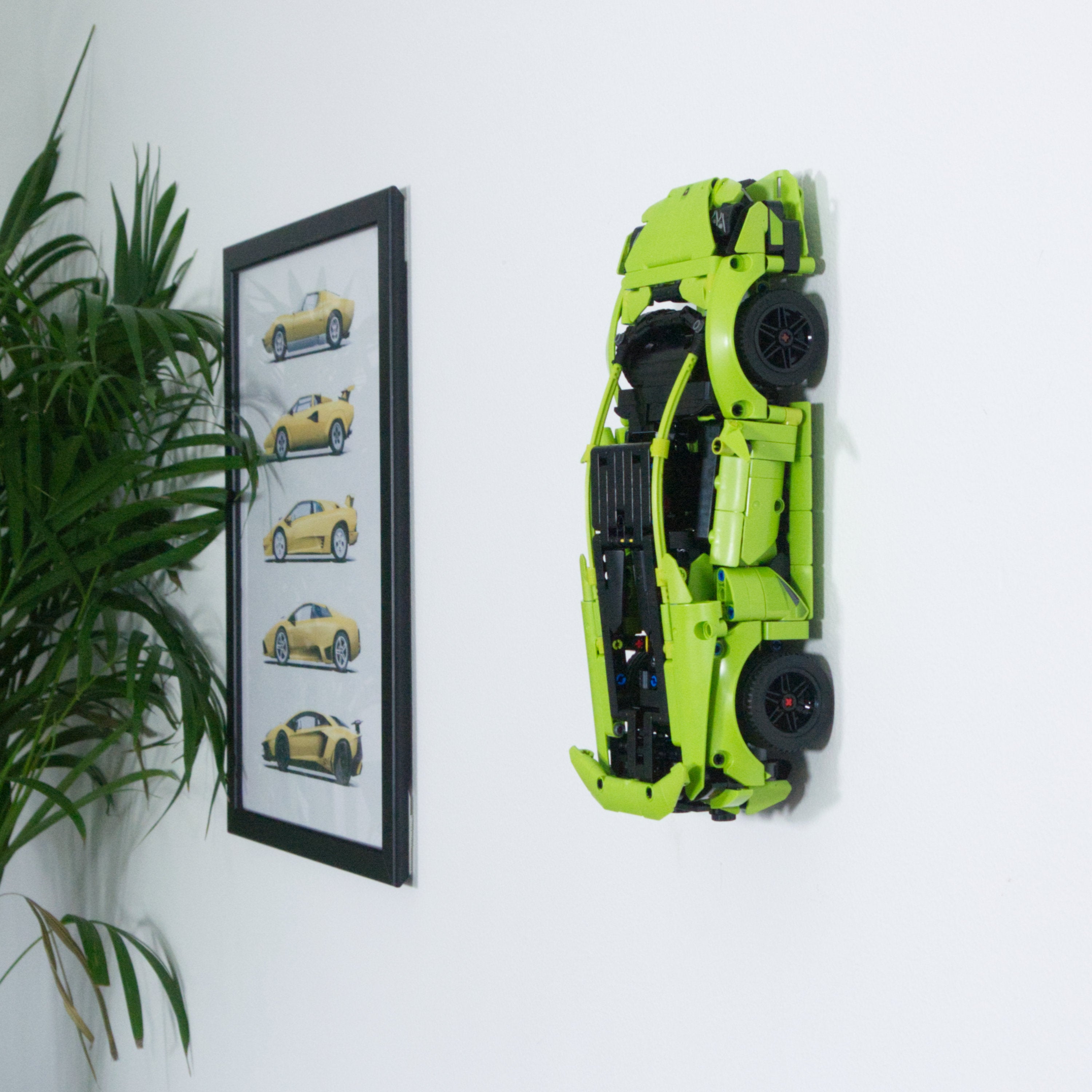 Fremvis din Technic Lamborghini Huracan horisontalt eller vertikalt med dette vægophæng. Designet muliggør, at bilen kan vende mod venstre eller højre, og sikrer nem aftagning. Beslaget fastgøres til væggen ved hjælp af en enkelt skrue på op til 5 mm i diameter.