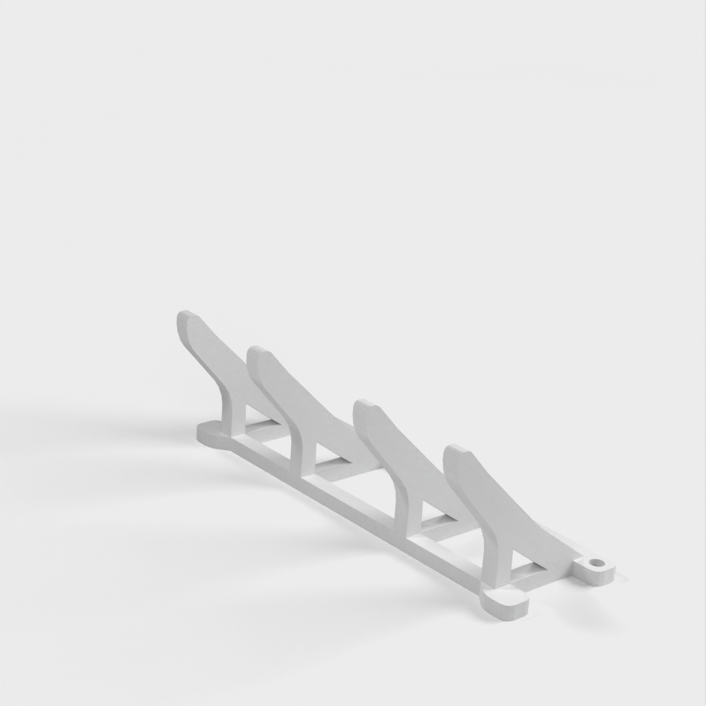 Jedná se o praktický nástěnný držák určený k zavěšení bot na zeď. Tento držák lze snadno namontovat přímo na zeď pomocí šroubů. Po namontování bot poskytuje uklizený a uspořádaný vzhled vašeho pokoje.