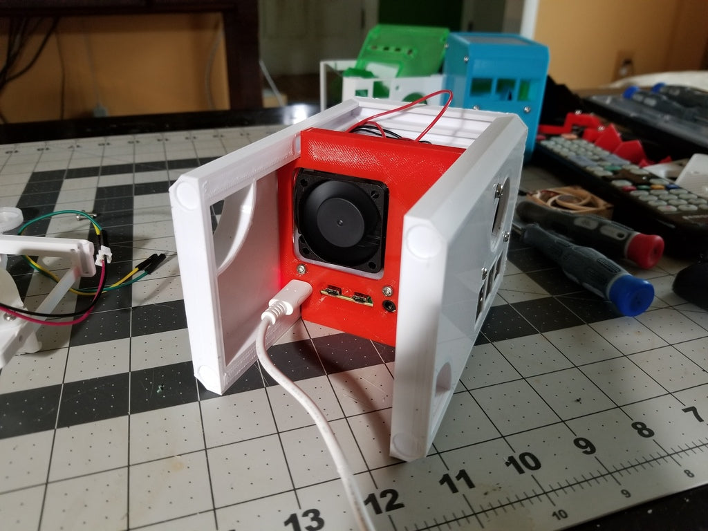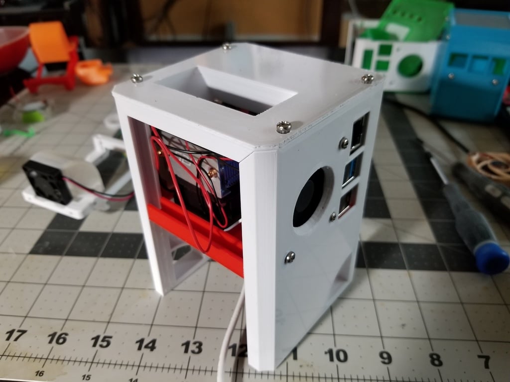 • Díly pro vylepšení vertikálního pouzdra Raspberry Pi 4, které podporuje konfiguraci se dvěma ventilátory.