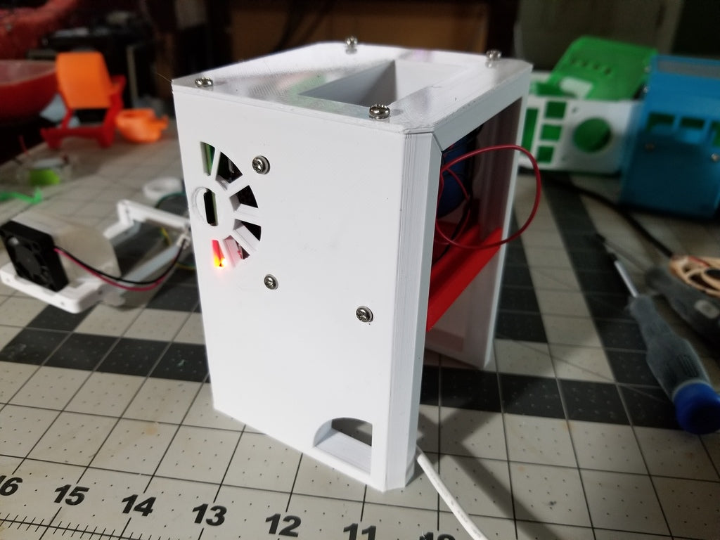Tyto díly slouží k aktualizaci vertikální chladicí skříně Raspberry Pi 4+ Ice Tower Cooler, aby bylo možné využít novou konfiguraci se dvěma ventilátory. Díky této úpravě získá vertikální skříň veškerý chladicí výkon skříně Mini Desktop. Modifikace vyžaduje přetisknutí většiny skříně. Strana SD dostane výfukový port a strana USB dostane nasávací trychtýř. K dispozici je volitelná alternativní spodní část, která pojme 40x20mm ventilátor na chladiči, a alternativní horní část, která odstraní kanál z původní verze a nahradí výfukový port mřížkou. Tím se uvolní prostor kolem pinů GPIO a usnadní se připojení více ventilátorů.