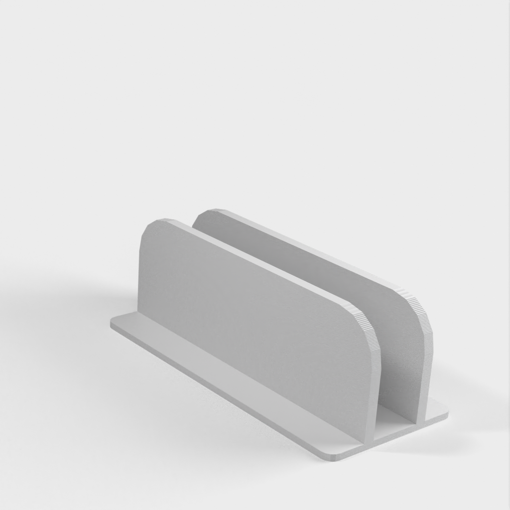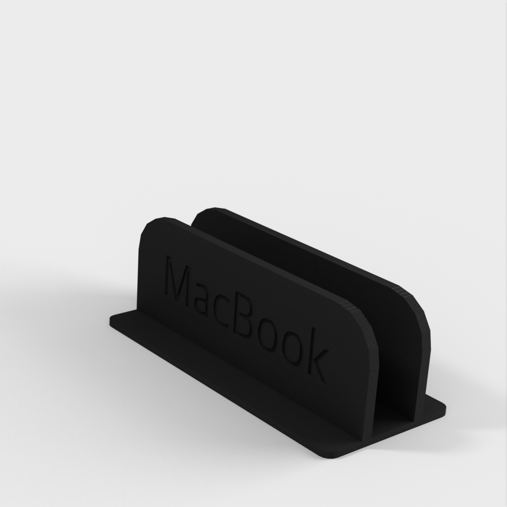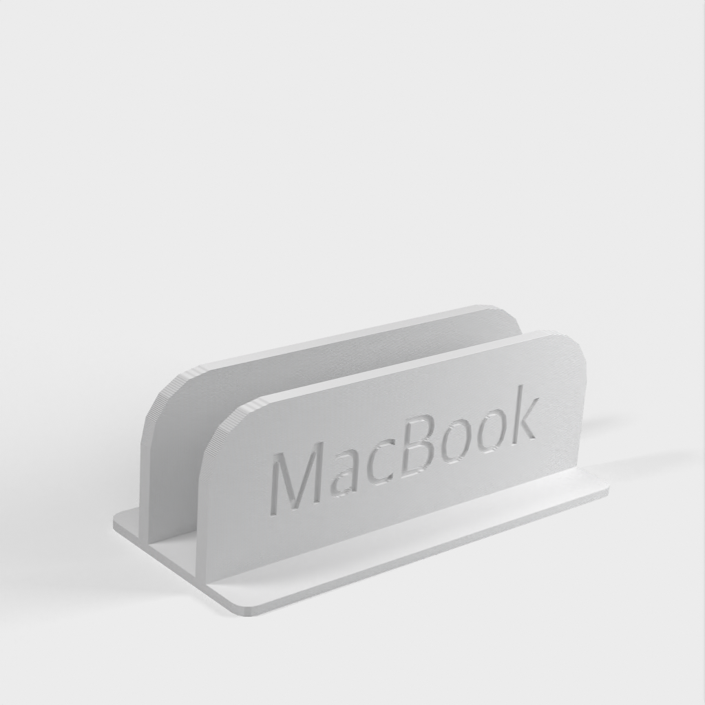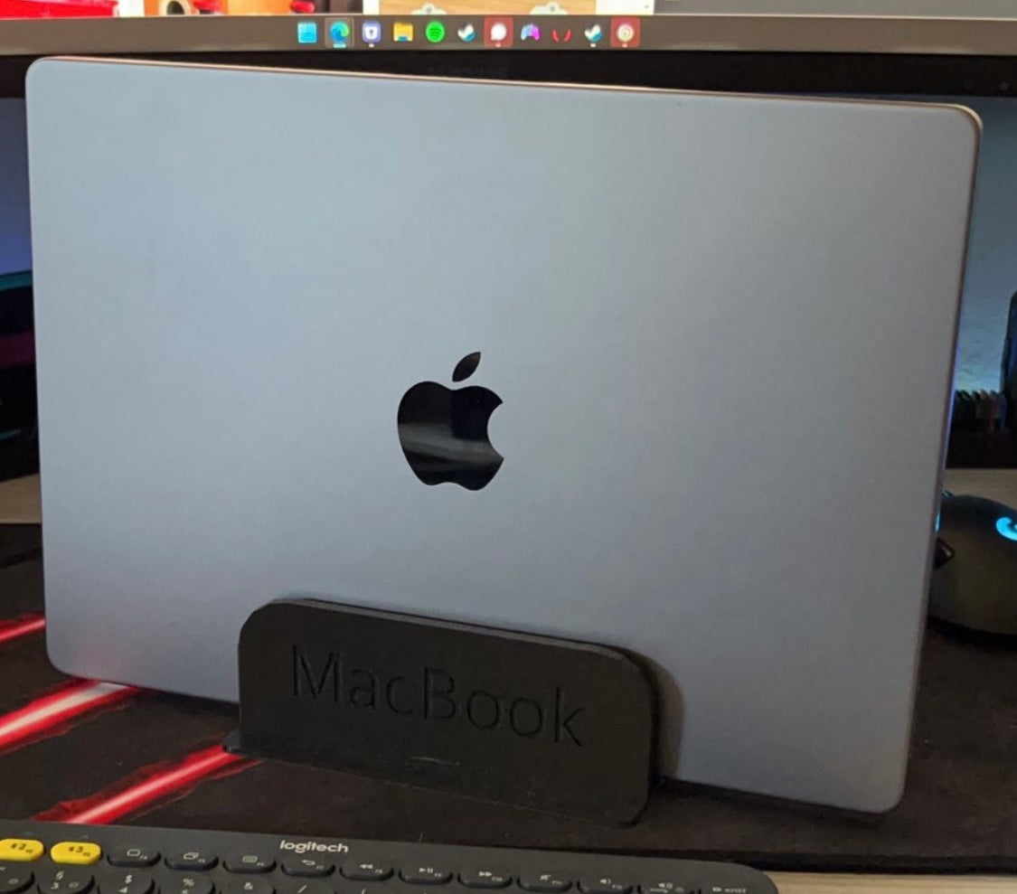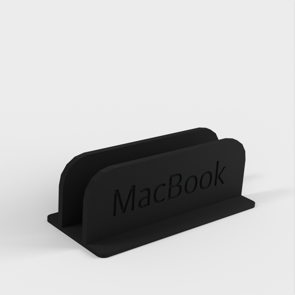 Jedná se o vertikální stojan pro MacBook Pro 14'. Stojan udrží MacBook na místě, takže jej můžete umístit na stůl, aniž by zabíral mnoho místa. Dovnitř stojanu jsem nalepil plstěné podložky, které zajišťují dokonalé přizpůsobení a zabraňují poškrábání MacBooku. Vezměte prosím na vědomí, že stojan je o něco širší než váš MacBook.