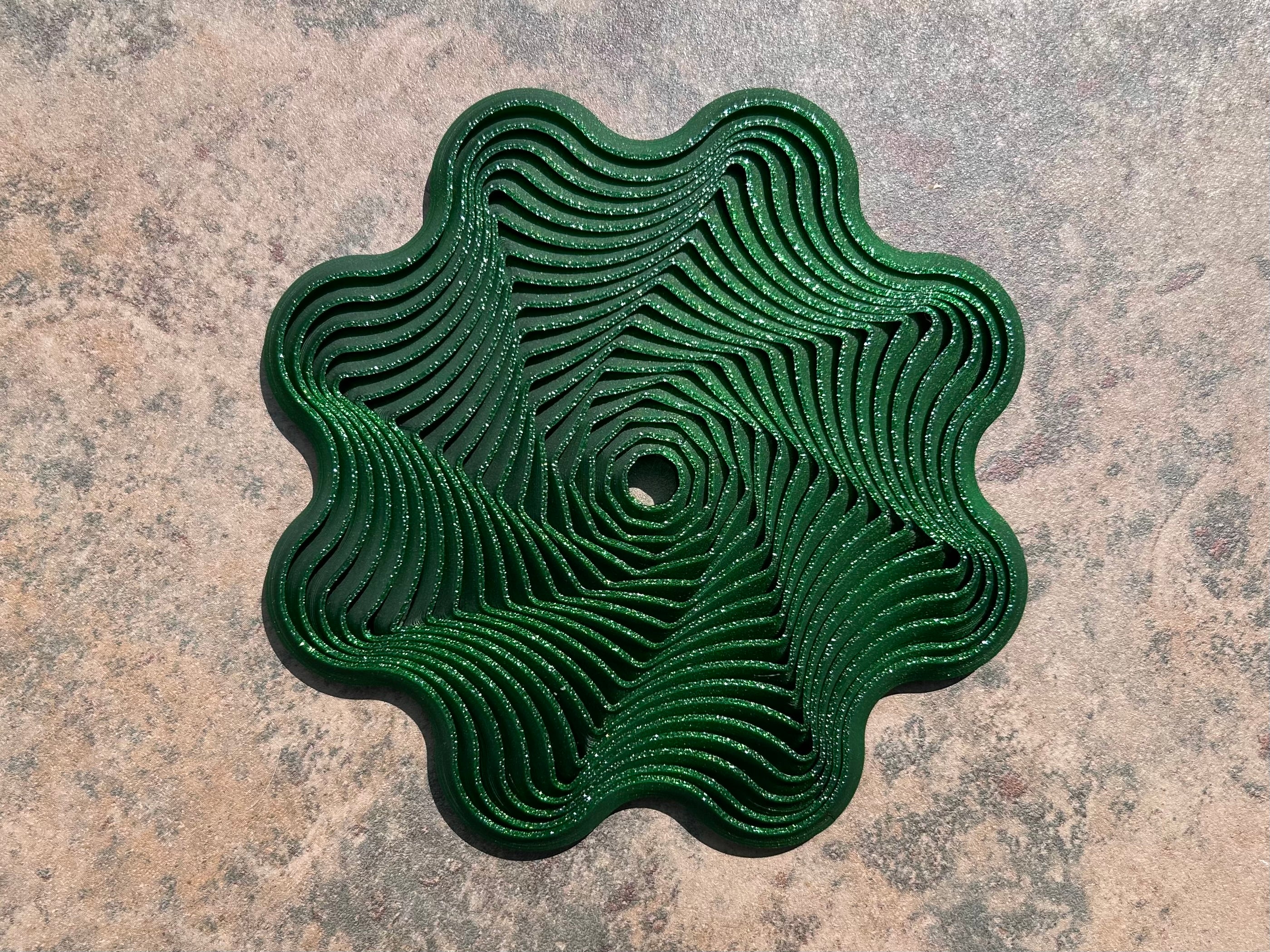Objevte uklidňující účinek Wavy Nested Fidget, antistresové hračky navržené s unikátním a esteticky příjemným vlnitým vzorem. Tento fidget nabízí hmatový zážitek, který se postupně mění od slabě zaoblených vln na okraji po osmiúhelníky ve středu, což jej činí jak vzrušujícím na pohled, tak při používání.