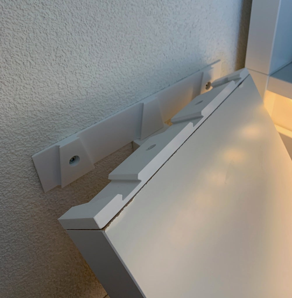 Vylepšená verze montáže na stěnu pro malou polici IKEA Lack. Dodávaná montáž je nestabilní a obtížně se montuje, aniž by došlo k poškození police Lack nebo stěny za ní. Tato montáž se skládá ze dvou částí, desky, která se přišroubuje na zadní stranu police Lack, zde lze použít stejné šrouby, které drží současnou montáž, a desky pro připevnění na stěnu, použijte stejný typ šroubů a rozteč šroubů, jako byste to "normálně" namontovali.