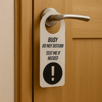 Tato značka je zdvořilý způsob, jak lidem říct, že se soustředíte, pracujete nebo si jen přejete být na chvíli v klidu. Značka dokáže vyjádřit vaše přání, abyste byli ponecháni v klidu, pevným a zároveň zdvořilým způsobem, takže si zachováte klid a harmonii.